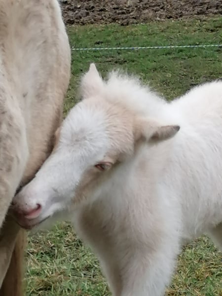 Hallo zusammen, Ich weiß, es ist früh im Jahr, doch glaubt mir, ich erhelle jeden grauen Tag (wie mein Name schon sagt) mit meinem sonnigen Wesen und meiner strahlenden Erscheinung! Meine Mama ist eine sanfte Elfe, mit ganz schicken akzentuierten 5 Gängen und ganz besonnenen coolen Charakter, den man ihrem Papa Ypsilon fran Frihamra nachsagt. Mein Papa ist Kappi von Drei Gleichen ein freundlicher, spannender 5 gängiger Junghengst mit sehr bekannten Vorfahren, wie Álfasteinn frá Selfossi und Illingur frá Tóftum Jetzt zu mir: Ich heiße Birtandi genannt Birti und bin erst eine Woche alt, doch wer mich sieht, verfällt meinem Charme sofort. Mein Frauchen ist leider seit Jahren nur mit Hengstfohlen gesegnet, drum kann sie mich leider nicht behalten, auch wenn sie unter anderen Umständen selbst schwach werden würde. Ich bin ein wahrer Jackpot und einfach ein Gesamtpaket für jeden, der das Besondere sucht. Ich bin ein Doppelcremeschecke mit Blesse und strahlend blauen Augen (Grundfarbe wird noch getestet) und ganglich ein echtes Schmankerl. Ich zeige vom ersten Tag an Tölt ist jeder Geschwindigkeit mit ganz viel Aktion. Man sieht mich immer wieder im Trab schweben. Galoppieren kann ich natürlich auch und im Rennpass so richtig Gas geben ist ebenfalls meine Leidenschaft. Charakterlich bin ist ein ganz höflicher, respektvoller kleiner Kerl. Bislang fallen mir noch keine Dummheiten ein und ich kooperiere gerne mit den Menschen. Die wollen schließlich nur das Beste für mich, sagt auch meine Mama. Lasst euch bitte nicht einschüchtern von meinen Qualitäten, denn wisst ihr was? Ich weiß noch gar nicht, wie man Deckhengst oder Turnierkracher schreibt. Aber ich weiß, dass es unendlich wichtig ist einen Menschen zu finden, dem ich die Welt bedeute und dem ich im Gegenzug meine ganze Welt zu Füßen legen kann. Ich suche einen Menschen, der weiß, welche besondere Verbindung entsteht, wenn man ein Pferd von klein auf begleitet, der mir alles zeig was wichtig ist und vorallem jemanden, der zu schätzen weiß, dass dieses Jahr Ende Februar ein ganz besonderes Juwel geboren wurde, das nur das Beste verdient hat! Mein Frauchen sorgt für alle wichtigen Grundsteine, bis ich Ende August zu dir ziehen kann und es wäre auch möglich, mich noch weiter hier aufwachsen zu lassen, ganz wie du magst! Ich bin schon sehr gespannt, welcher Mensch nur auf mich gewartet hat, damit das Schicksal uns zusammen führen kann!