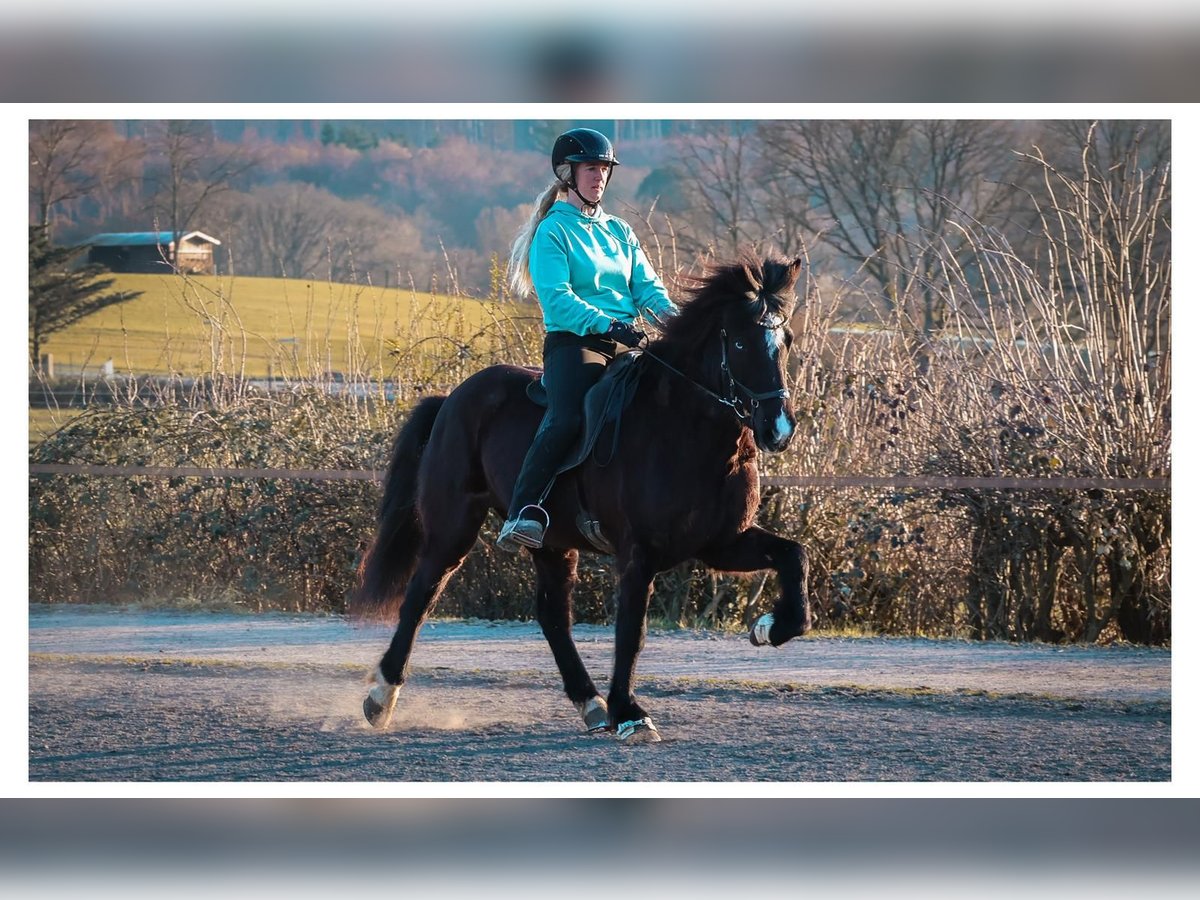Rovinja is a 13-year-old, elegant and tall five-gaited mare that commands attention with her striking appearance. Leggy, expressive, and blessed with the distinctive Splash gene, she naturally draws all eyes, whether on the dressage arena or out in the field. Her size, mechanics, and charisma give her a presence that is impossible to overlook. As a typical five-gaited horse, her greatest strength is clearly her tölt. From a calm walk to a good working trot, she demonstrates excellent quality, rhythm, and expression—truly a pleasure for the rider. Her basic gaits are always accessible but require calmness and patience to bring out her best. With lighter boots, Rovinja finds her balance particularly well and then also shows trot and canter in an appealing quality. She offers a fantastic riding experience and genuinely wants to please her rider. The flying pace (racing pace) is present but has never been specifically trained or developed; however, she naturally offers it to the rider. She has great potential for those willing to continue working with her. Rovinja is well-trained, sensitive to aids, and pleasantly forward-thinking. She is easy to regulate and makes tölt riding a true delight. At the same time, she needs a confident rider who can provide her with security and clarity, as she can sometimes become a bit excitable. She is more of a horse that enjoys working and is suitable as a stylish leisure horse, a reliable partner for rides and trail riding, or for smaller competitions. Rovinja leaves little to be desired in these areas. Since arriving in Aegidienberg in 2025, she has been part of our large mare herd and has proven to be an unobtrusive, friendly mare in handling. She was born in Austria. Notably, her grandsire, Glampi frá Vatnsleysu, was renowned for his exceptional gait quality and striking appearance in his time—qualities that Rovinja also certainly possesses. Rovinja is a mare suited for riders with sensitivity and experience who appreciate quality, charisma, and subtle communication. If you are looking for an elegant five-gaited mare with a distinctive look and plenty of tölt, Rovinja could be the perfect match for you.