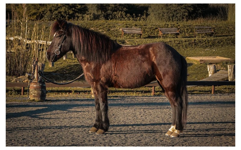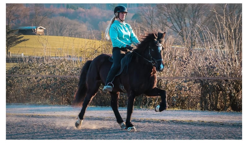 Rovinja ist eine 13-jährige, elegante und großrahige Fünfgangstute, die allein durch ihre Erscheinung Eindruck hinterlässt. Langbeinig, mit viel Ausdruck und dem besonderen Splash-Gen gesegnet, zieht sie die Blicke auf sich. Auf der Ovalbahn genauso wie im Gelände. Ihre Größe, ihre Mechanik und ihre Ausstrahlung verleihen ihr eine Präsenz, die man nicht übersieht. Typisch fünfgängig liegt ihre größte Stärke ganz klar im Tölt. Von ruhigem Tempo bis ins gute Mitteltempo zeigt sie hier gute Qualität, Takt und Ausdruck. Ein echtes Genussgefühl für den Reiter. Die Grundgangarten sind jederzeit abrufbar, benötigen jedoch Ruhe und Gelassenheit, um sich in ihrer besten Form zu zeigen. Mit leichteren Boots findet Rovinja besonders gut in ihre Balance und präsentiert dann auch Trab und Galopp in ansprechender Qualität. Sie vermittelt ein tolles Reitgefühl und möchte ihrem Reiter gefallen. Der Rennpass ist vorhanden, wurde jedoch nie gezielt trainiert oder ausgebildet. Dennoch bietet sie ihn dem Reiter von sich aus an. Ein schönes Potenzial für alle, die hier weiterarbeiten möchten. Rovinja ist gut ausgebildet, fein an den Hilfen und angenehm vorwärts denkend. Sie lässt sich gut regulieren und macht das Töltreiten zu einem wahren Vergnügen. Gleichzeitig braucht sie einen routinierten Reiter, der ihr Sicherheit und Klarheit gibt, denn sie kann auch einmal etwas aufgeregter sein. Sie ist eher ein Pferdetyp, der gerne gearbeitet wird. Ob als schickes Freizeitpferd, als zuverlässige Partnerin für Ausritte und Wanderritte oder für kleinere Turniere. Rovinja lässt hier kaum Wünsche offen. Seit ihrer Ankunft 2025 in Aegidienberg steht sie in unserer großen Stutenherde und zeigt sich dort als unauffällige, freundliche Stute im Umgang. Geboren wurde sie in Österreich. Besonders erwähnenswert ist ihr Großvater, Glampi frá Vatnsleysu, der zu seiner Zeit für seine außergewöhnliche Gangqualität und seine besondere Optik bekannt war. Qualitäten, die auch Rovinja nicht abzusprechen sind. Rovinja ist eine Stute für Reiter mit Gefühl und Erfahrung, die Freude an Qualität, Ausstrahlung und feiner Kommunikation haben. Wenn du eine elegante Fünfgangstute mit besonderem Look und viel Tölt suchst, könnte Rovinja genau die Richtige für Dich sein.