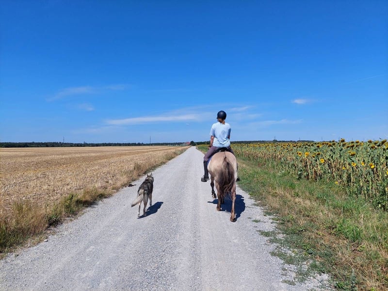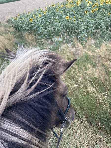 Da ich leider aus familiären Gründen weniger Zeit für meine Islandstute habe, suche ich auf diesem Weg eine/n liebe/n und verlässliche/n MitreiterIn. Gaefa ist eine recht groß und kräftig gebaute Viergängerin, die aber schon seit längerer Zeit großteils nur mehr dreigängig geritten wird (Tölt derzeit nicht sicher, müsste man wieder herausarbeiten). Sie hat sehr schöne raumgreifende Gänge und lässt sich gut dressurmässig arbeiten. Ich finde sie großartig zu reiten (sonst hätte ich sie nicht), aber sie ist kein Selbstläufer und keine Maschine, fordert ihre/n ReiterIn und ist durchaus stur (gerade zu Beginn, mitunter auch zwischendurch, probiert sie gerne aus). Dadurch ist sie nicht für AnfängerInnen, unsichere ReiterInnen oder Kinder geeignet. Durchsetzungsvermögen und Konsequenz (ohne Grobheit) und trotzdem ein liebevoller, geduldiger und fairer Umgang sind wünschenswert. Ausreiten geht sie gerne, sie braucht im Gelände aber eine/n ReiterIn, der Ihr Sicherheit vermittelt, und kann ungestüm und aufgeregt werden. Bodenarbeit und Longieren machen wir regelmäßig. Gaefa ist sehr menschenbezogen, erkennt bekannte „Herdenmitglieder“ (samt Auto) von der Ferne und kommt mit einem Begrüßungswiehern zum Koppelzaun. Sie liebt es natürlich, lange geputzt und gekrault zu werden und grasen zu gehen (sie ist ziemlich verfressen…) Ich verlange eine Kostenbeteiligung von 220 Euro pro Monat für 2 Tage in der Woche (gerne auch fix einen Tag am Wochenende - kurzfristig sind auch beide Wochenendtage möglich, das kann ich aber nicht langfristig garantieren). Mithilfe im Stall wie Ausmisten oder Füttern ist nicht erforderlich (ausgenommen natürlich die selbstverständliche Pferdeversorgung wie Putzen, Hufe auskratzen etc.) Der Stall ist öffentlich nicht erreichbar und mit dem Auto ca. 10 min von Gänserndorf entfernt. Er verfügt über eine Reithalle (20x60), zwei Vierecke (20x40), eine Ovalbahn (250m), einen Roundpen und ein direkt angrenzendes Ausreitgebiet vor der Tür (keine Straße). Unterrichtsmöglichkeit wäre vorhanden. Gaefa steht tagsüber mit ihrer kleinen Herde auf der Koppel, ansonsten in einer großen Box mit Paddock. Ich hoffe auch auf eine langfristige „Partnerschaft“ für Gaefa. Wir freuen uns sehr über ein Kennenlernen und Probereiten, ob „die Chemie“ passt - Bitte aber nur ernsthafte Interessenten/Interessentinnen. Anfragen bitte über die Plattform.