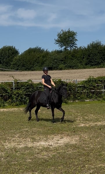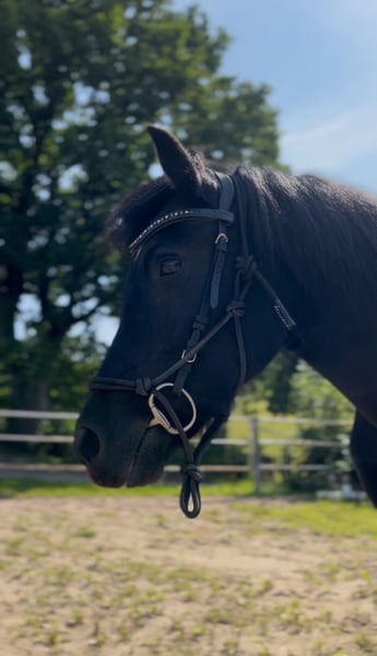 IJslandse merrie Hrapa van Störblick – Hartsvriend zoekt hartsvriend(in) De in 2009 geboren, 131 cm grote vierganger is een gevoelige, intelligente en betrouwbare vrijetijdspartner. Ze reageert op de kleinste hulpen, töltert graag uit zichzelf en is in het terrein absoluut veilig – verkeer, honden of landbouwmachines maken geen indruk op haar. Hrapa kent rijden, handpaardwerk, grondwerk en dubbele longe. Veel oefeningen beheerst ze alleen op stem of lichaamshouding. Ze is hoefsmid- en laadvriendelijk, nieuwsgierig en gemotiveerd. Ze zoekt een ervaren, rustige ruiter (max. 75 kg) die plezier heeft in fijne communicatie en duidelijke leiding. Geen beginnerspaard. Met geduld en vertrouwen zal ze een loyale vrijetijdspartner worden, vooral in het terrein. In 2023 had ze een hoefbevangenheid, die volledig genezen is (röntgenfoto's zijn beschikbaar). Bij aangepaste voeding (hooi- en mineralenvoeding, graanvrij) en voldoende beweging is ze probleemloos te hanteren. Ze is momenteel onbevangen, regelmatig gevaccineerd en ontwormd. Huisvesting: Ze heeft nauw sociaal contact nodig, een box met dagelijkse uitloop of een open stal met weidegang in overleg. Bijgeleverd worden hoofdstel, toebehoren en op verzoek haar passende Massimo-töltzadel (tegen meerprijs). Ze heeft alle papieren en heeft een veulen (2015) gehad.