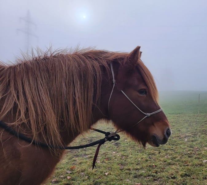 Raudi ist eine großrahmige und unerschrockene Stute. Ideal für entspannte Ausritte. Sie hatte letztes Jahr ein Hengstfohlen und wird gerade wieder antrainiert. Verträglich und unkompliziert im Herdenverhalten.