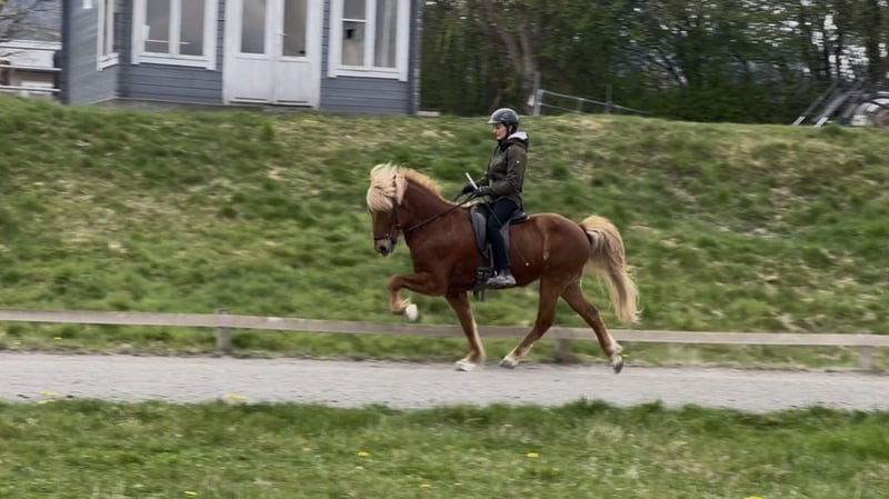 Hyllir frá Dverghamri ist ein 2013 geborener großer Fuchswallach. Er verfügt über einen sehr schönen Tölt in allen Tempi, mit dem er sofort in T3/T4 einsetzbar wäre. Sein Galopp ist gut gesprungen, sein Trab ist sicher mit weiten Bewegungen und er steht immer fein an den Hilfen. Er hat viel Lauffreude, ist aber bei routinierten Reitern immer problemlos zu regulieren und bringt immer einen tollen Arbeitswillen mit. Im Gelände ist er sowohl alleine als auch in der Gruppe zuverlässig. Charakterlich ist er einfach unkompliziert, sehr höflich im Umgang und auch in der Herde sehr leicht zu integrieren. Hyllir ist für alle Reitabzeichen sehr gut einsetzbar und auch für Trainerlehrgänge gut geeignet. Auch kann ich mir ihn gut als Jugendsportpferd vorstellen. Da ich ihn leider aus persönlichen Gründen abgeben muss, suche ich ein bestmögliches zuhause für ihn. Er ist gesund, ekzemfrei und absolut schmiede- und verladefromm. Weitere Infos und Videos auf Anfrage.