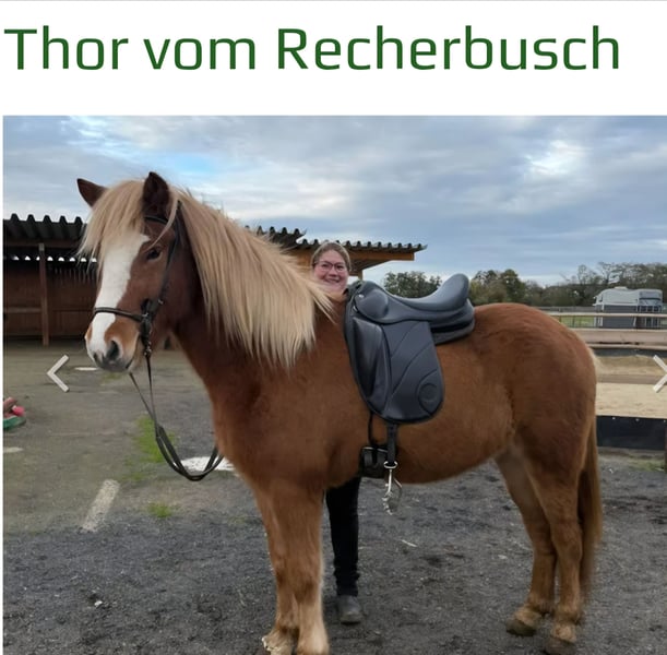 Thor vom Recherbusch - ein Pferd das Herz & Seele berührt. Gemüt: Thor ist ein tolles Pferd: sein Charakter ist sanft, gutmütig, gelassen, freundlich, menschenbezogen, süß, charmant und vertrauensvoll. Schon auf dem Paddock wird man von seiner offenen, herzlichen Art empfangen und gleich schenkt er einem eine innere Ruhe und Wohlfühl- Faktor. Seine Gänge: Er ist ein echtes Töltsofa- Tölt in allen Lebenslagen, mit und ohne Zügel und sichere, bequeme Grundgangarten. Thor strahlt solide Gelassenheit aus ohne dabei Langweilig zu sein - er reagiert fein an allen Hilfen und läuft nie zu viel und nie zu wenig - die goldene Mitte, die sich jeder Reiter wünscht! Highlights:💥 Mit seiner Größe von 150 cm ist er ein sehr großer Isländer, ist dabei aber dennoch eher elegant gebaut. Er deckt so eine Vielzahl von Reitern ab und schenkt ein wunderbares Reitgefühl- stattlich, stabil, sicher. Thor kennt das Reiten im Gelände, in der Halle, auf der Bahn und lässt sich gut am Boden arbeiten und longieren. Er wird jetzt 5 Jahre alt, daher ist er altersentsprechend noch etwas grün hinter den Ohren - sein neuer Mensch kann mit ihm gemeinsam die Welt entdecken!
