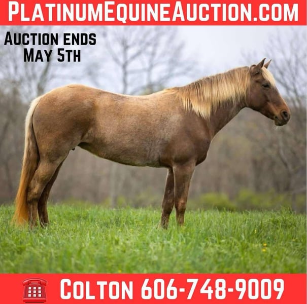 ONLINE AUCTION Place your bids at www.PlatinumEquineAuction.com Starting Bid $3500 Auction ends May 4th, 2025 Need a new saddle? Check out White Rock Saddles on our website or Facebook! Everyone meet Cinnamon! Cinnamon is a 14-year-old REGISTERED ROCKY MOUNTAIN mare! She stands 15.3 hands tall and will weigh around 1150lbs! She is absolutely stunning with her chocolate roan coat and very stocky build! She’s an absolute barn favorite! She is beginner-friendly and a confidence builder! She’s been hauled to state parks for trail riding and ridden around our farm. Cinnamon has a very smooth and soft ambling gait! She loads and unloads nicely in new places with no issues. -She will stand on the trailer with no fuss. When trail riding she will cross logs, enter in water and walk up and down steep grades of ground with no issues! She is sure-footed and makes no mistakes as she tries to give her rider a confident, enjoyable ride! She will walk or gait on a loose rein. She stops with an easy whoa! She will back any direction asked! She’s super easy and super soft in the mouth! She will follow or lead in a group! She’s easy to catch as she is the first to meet you at the gate! She’s very personable and is super easy to handle! Cinnamon is super gentle, she stands to be groomed, tacked, and bathed with no issues! Grad her out of the field, put some fly spray on her; tack her up & enjoy your ride! Nothing seems to faze her! If you’re looking for a trail riding partner or wanting to win a ribbon in the ring, Cinnamon may be your pick! She’s super easy and will make a great beginner or confidence builder! Cinnamon was trimmed on 04/15/25 and is current on coggins and health papers! Please call for further questions and information! We’d love to chat! Thank you, contact PR Quality Horses Colton 606-748-9009 or Haley 859-475-2621. ONLINE AUCTION Place your bids at www.PlatinumEquineAuction.com Starting Bid $3500 Auction ends May 4th, 2025 Need a new saddle? Check out White Rock Saddles on our website or Facebook!