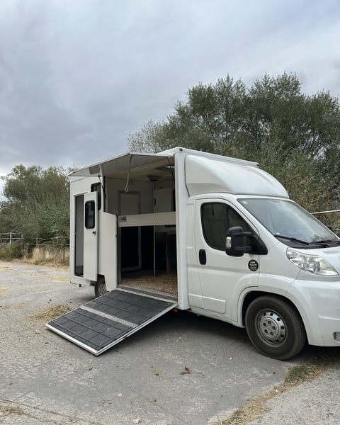 Disponible ✅ ✨ Os traemos nuestra nueva furgoneta para caballos ✨ Disponible para alquiler, con o sin conductor 🚐 🎫 Carnet B → el mismo que para el coche Perfecta para el transporte de hasta 2 caballos 🐎🐎 ⚙️ Manual | 👥 3 plazas | 🧳 Guadarnés | 📹 Cámara para vigilancia del caballo y cámara trasera para facilitar el aparcamiento 📩 Escríbenos para solicitar presupuesto o más información. Whatsapp: (0034) 679 893 760