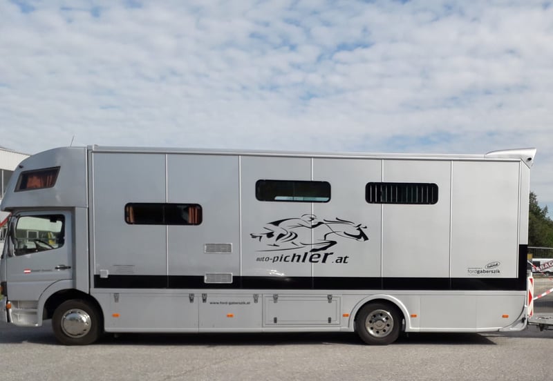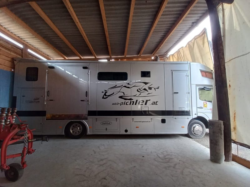 Wir verkaufen unseren treuen Pferde LKW mit Wohnabteil 2 Schlafplätze (Doppelbett) oberhalb der Fahrerkabine, Esstisch, Sitzbank, Sitzhocker. Kleiderschrank, Schuhregal, viele Staufächer, Waschbecken, 2 elektronische Kochplatten, Kühlschrank, WC, Dusche, eigenes Waschbecken im Badezimmer. Der Durchgang von der Wohnkabine zum Pferdeabteil ist durch eine Tür möglich. Der LKW bietet Platz für 4 Pferde mit einem Gang als Platz für Material etc. dazwischen. Platz für 4 Sättel und weiterer Stauraum (2 Sattelkammern und ein weiteres Fach). Der LKW ist mit uns durch halb Europa gefahren und hat uns dabei nie im Stich gelassen. Normales Schaltgetriebe. Er ist in einem guten Zustand und sofort einsatzbereit. Wurde nie im Winter gefahren. In dieser Zeit war er immer überdacht untergestellt. Der LKW wird nur verkauft, weil ein Modell mit Platz für mehr Pferde und Personen benötigt wird. Für weitere Informationen bitte um Nachricht 0664/4407439.