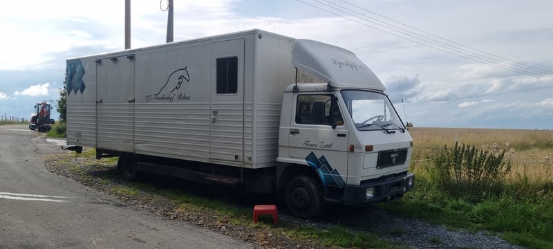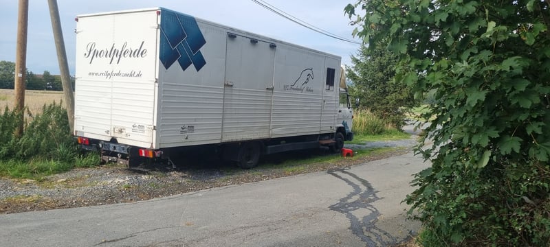 Wir verkaufen unseren Pferdetransporter inkl. Stallzelt, da er nun seit Jahren bei uns rumsteht und wir nicht mehr so viele Turnierpferde haben. Da wir ihn nicht mehr genutzt haben, hat er auch schon länger keinen TÜV mehr. Bj. 11/91, 262.000 km, 7,5 t, Aluaufbau und Aluboden