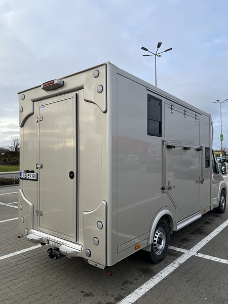 Szanowni Państwo, Oferujemy koniowóz na 2 konie — rok produkcji 2024 — nowa zabudowa z 2025 r. Sprzedaż prywatna, umowa kupna–sprzedaży. Pojazd w pełni sprawny, objęty fabryczną gwarancją. Samochód wyprodukowany w 2024 roku, posiada przebieg 29 000 km, natomiast zabudowa dla koni została wykonana w 2025 roku i jest całkowicie nowa, nieużywana. Do obejrzenia pod Lublinem, 21-025 Niemce. Parametry pojazdu: Rok produkcji: 2024 Przebieg: 29 000 km Pojemność: 2200 cm3 Moc: 180 km DMC 3500 kg Wzmocniony hak - możliwość pociągnięcia przyczepy do 3100 kg Liczba miejsc: 3 Kanapa z tyłu Miejsce do spania dla 2 osób Wyposażenie kabiny: Klimatyzacja Skórzana tapicerka Tempomat Radio / multimedia Kamera cofania Monitor do obserwacji koni Zabudowa dla koni (nowa, nieużywana): Koniowóz na 2 konie (zabudowa ogierowa) Okna + system wentylacji dla koni Kamera do obserwacji koni Oświetlenie dla koni — białe i niebieskie Klapa boczna załadunkowa — antypoślizgowa Mata antypoślizgowa 'pod' końmi Przegroda demontowalna Możliwość demontażu ścian Wykończenie w stali kwasoodpornej Siodlarnia Cena: 275 000 zł Serdecznie zapraszamy do kontaktu przez platformę lub pod nr tel 602 378 719 (WhatsApp/telefon).