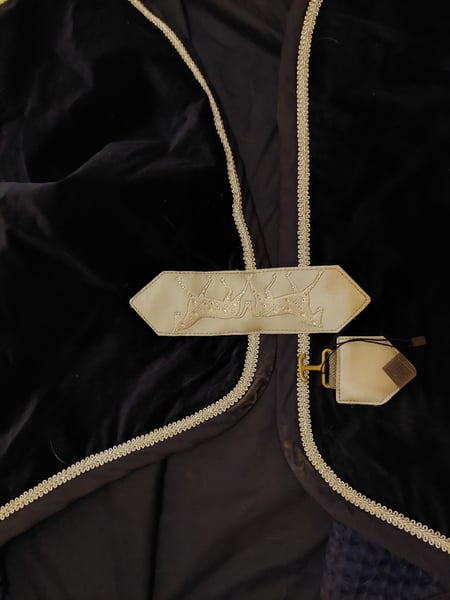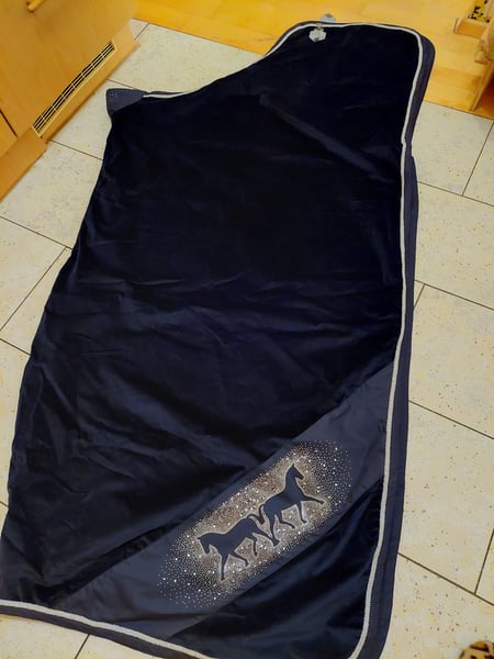 Verkaufe die wunderschöne Samtdecke mit Swarovski Steinchen in royalblau Größe L, 145 cm wurde nur 1x am Pferd zur Anprobe getragen, somit wie NEU! made in Italy wurde in Italien um Euro 320,-- gekauft Bezogen mit elegantem Samt, verziert mit einem silbernen Besatz. Ideal für die Zwischensaison. Der Widerrist wird durch eine elegante Samtkappe geschützt (mit Swarovski Steinen verziert). Der Frontverschluss besteht aus einer Schnalle, die mit Kunstleder und Logostickerei überzogen ist. Keine Garantie oder Rücknahme, da Privatverkauf
