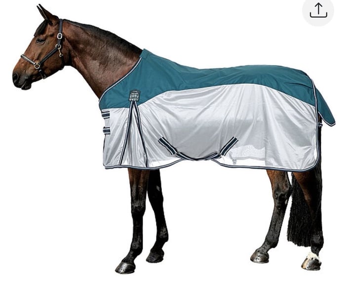 2-in-1 Fliegenschutz-Kombi-Decke Kadir Fly Ungewaschene Decke, nur ein paar Mal am Pferd gewesen. Keine Beschädigungen, guter Zustand.