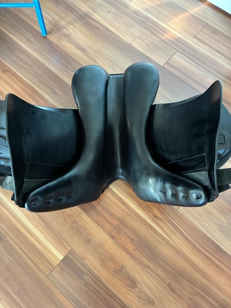 Ich verkaufe meinen Amerigo Dressursattel da ich auf eine andere Sattelart umstelle. Der Sattel wurde von mir immer sehr sorgsam behandelt und ist in einem sehr gepflegten Zustand. Er lag bis vor Kurzem auf einem rundrippigen Huzulen mit kurzem Rücken und wenig Widerrist. Gelagert wurde er ausschließlich mit Sattelschutz, regelmäßig gereinigt und gepflegt. Der Sitz ist sehr angenehm, man sitzt sicher und bequem – ideal für entspannte Dressurarbeit. Infos zum Sattel: Marke: Amerigo Dressursattel Sitzgröße: 17,5 Zoll Kammer kalt verstellbar durch den Sattler Zustand: sehr gepflegt Neupreis: 4.000 € Preis: 700 € Die Maße sind auf den Fotos ersichtlich. Besichtigung & Anprobe sind nach Absprache gerne möglich, gegen Hinterlegung des vollen Kaufpreises. Versand möglich. Privatverkauf, daher keine Garantie oder Rücknahme. Bei Interesse einfach melden – ich antworte zuverlässig Vielleicht passt der Sattel ja perfekt zu euch