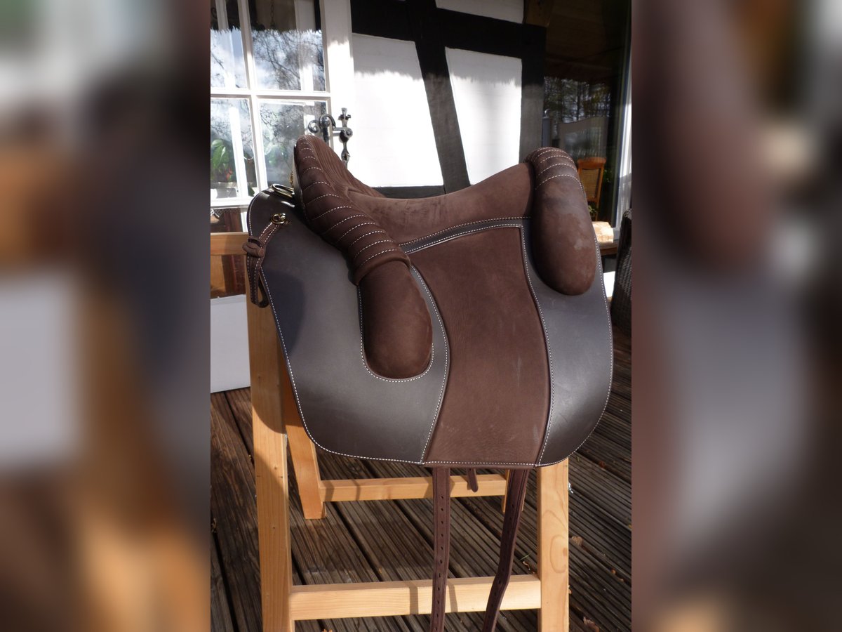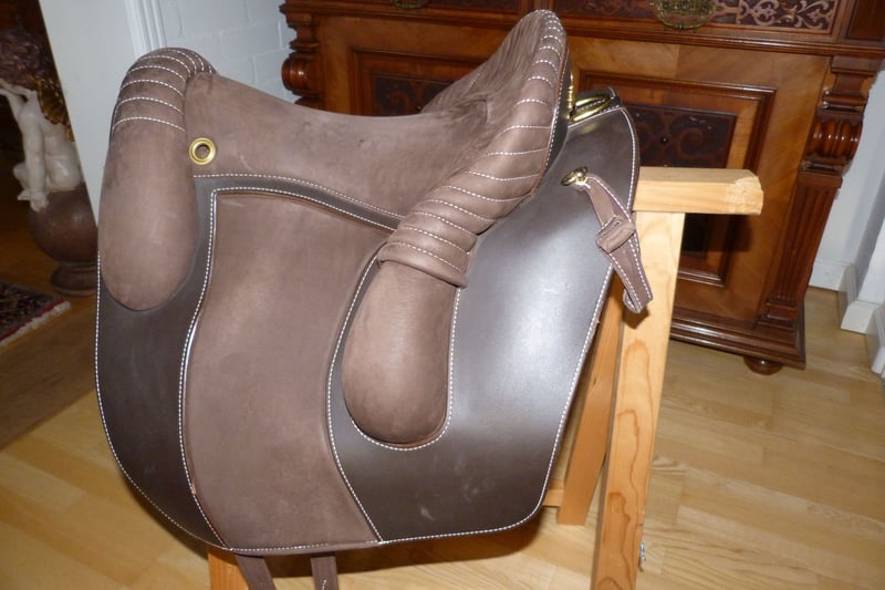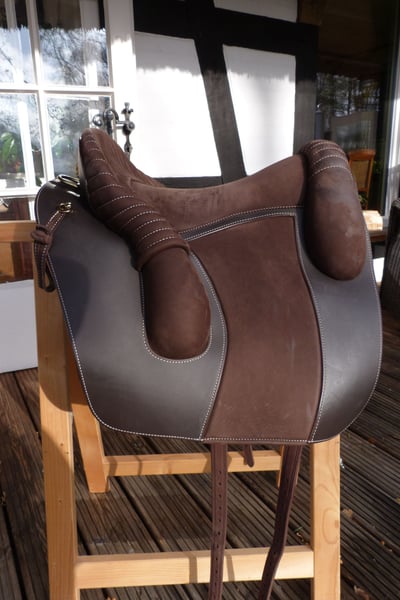 mit Ultra-Flex-Sattelbaum, Kammerweite stufenlos verstellbar Sitzgröße S2, Sattellänge ca. 53 cm, Sattelblattlänge 44 cm Soft-Knielage Leder braun, Sitzleder Nubuk, Beschläge messing Neupreis (gekauft 2024) 3699,00 Barzahlung bei Abholung möglich oder Vorab-Überweisung
