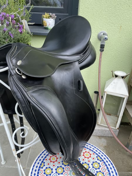 Ich verkaufe meinen Kentaur Elektra Dressursattel in der Größe 17,5". Der Sattel bietet einen tiefen, sehr komfortablen Sitz und verfügt über anatomisch geformte Kniepauschen, die dem Reiterbein optimalen Halt geben. Die breiten Wollkissen ermöglichen eine individuelle Anpassung, zudem kann der Sattel problemlos kalt verstellbar gemacht werden. • Modell: Kentaur Elektra •Gekauft: 2022 • Kammerweite: 3 • Zustand: Originalzustand, stets gepflegt und regelmäßig gereinigt • Sattelpass: vorhanden •Sattel kann kalt angepasst werden Eine Anprobe ist nach Hinterlegung des Kaufpreises möglich. Versand ebenfalls machbar.