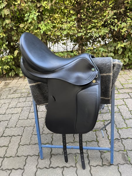 Verkaufe Prestige Roma Dressage Sattel von 2021. Sitzfläche 17“, Kammerweite 32. Sehr selten benutzt, also wie neu. Hat am Sattelblatt kleine Kratzer siehe Bilder. Neupreis 2100€ Standort Österreich