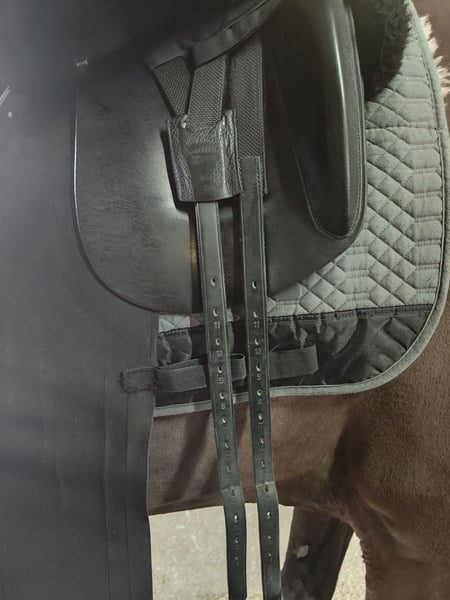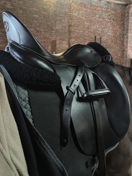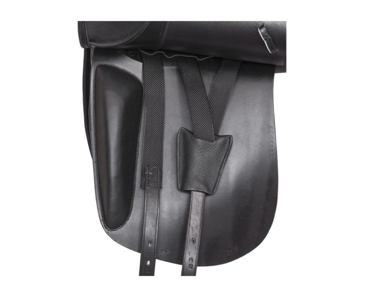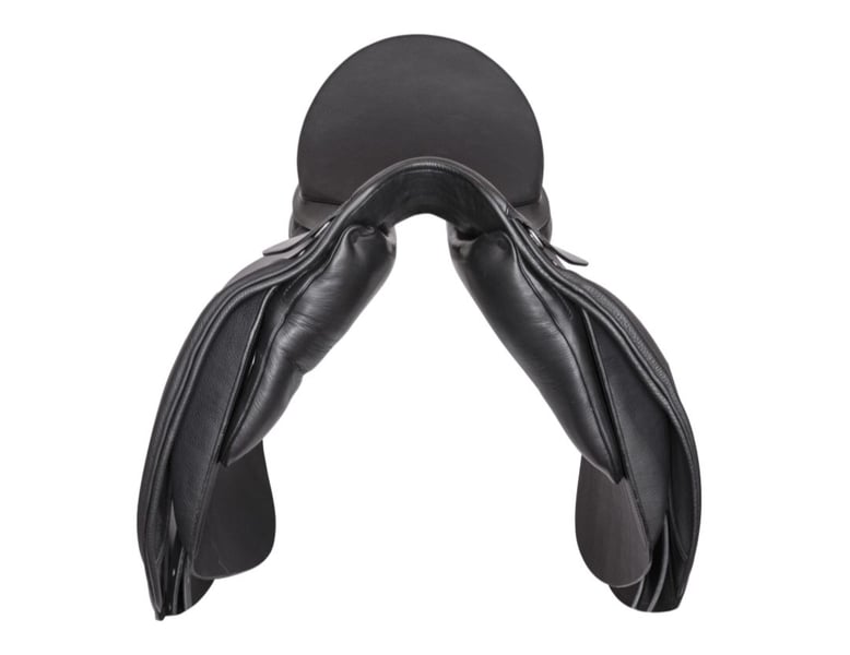 aus bestem Rindsleder, Triangelbegurtung. Bei diesem Dressursattel wurde bestes Rindsleder verarbeitet. Der tiefe Sitz verleiht ein hervorragendes Sitzgefühl. Durch den vollflexiblen Kunststoffbaum mit kalt verstellbarem Kopfeisen kann der Sattel fast jedem Pferd angepasst werden. Details des Dressursattels Remos Dolce: frei aufgehängtes Filz-Sandwichkissen, Triangelbegurtung und lange Sturzfeder. Die Kammerweite ist verstellbar. 17,5 Sitzfläche Auflagefläche: ca. 48cm Sattel ist in tip Zustand!