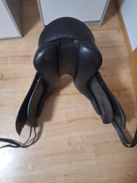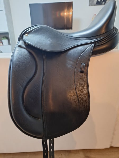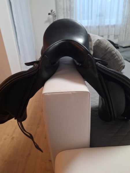 Schleese Rokeno – Maximale Schulterfreiheit trifft auf engsten Kontakt Suchen Sie einen Dressursattel, der Ihrem Pferd volle Bewegungsfreiheit ermöglicht und Ihnen gleichzeitig ein unvergleichlich nahes Sitzgefühl vermittelt? Der Schleese Rokeno vereint innovative Sattelbaukunst mit den strengen ergonomischen Richtlinien von Saddlefit 4 Life®. Die Highlights im Überblick: • Maximale Schulterfreiheit: Dank des patentierten AdapTree®-Sattelbaums genießt Ihr Pferd volle Freiheit in der Rotation – für raumgreifende Gänge und entspannte Losgelassenheit. • Enger Kontakt zum Pferd: Der spezielle Schnitt unter dem Oberschenkel ermöglicht ein extrem nahes Bein am Pferd, was präzise Hilfengebung erleichtert • 5-Punkt-Gurtung: Sorgt für eine optimale Druckverteilung und hält den Sattel auch in der Bewegung stabil in Position. Investition in die Zukunft: Lebenslange Anpassbarkeit Als Teil der Schleese-Familie folgt der Rokeno dem Saddlefit 4 Life® Prinzip. Er ist in Kammerweite und Winkelung jederzeit vor Ort durch einen zertifizierten Sattelergonomen an die muskuläre Veränderung Ihres Pferdes anpassbar. • Kein Druck auf die Wirbelsäule: Extra breiter Wirbelkanal. • Zustand & Details: • Modell: Schleese Rokeno • Sitzgröße: 17,5" • Farbe: Schwarz • Zustand: Sehr gepflegt, normale Gebrauchsspuren (siehe Fotos). Privatverkauf: Keine Garantie, Gewährleistung oder Rücknahme.