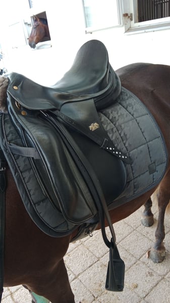 17 Zoll, etwas Schwung, breite Kammer, besonders: kurze Strippen (ein Traum beim Nachgurten) Sattel in einwandfreiem Zustand! Vom Sattler begutachtet.