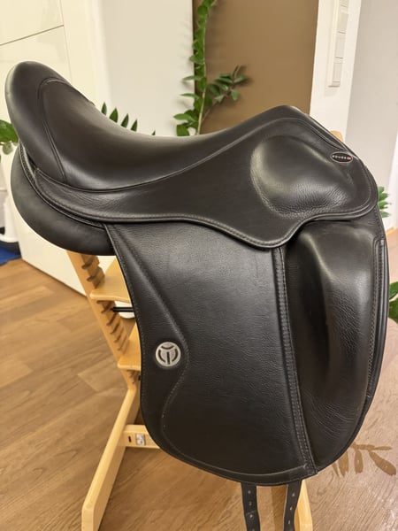 Gebraucht, guter Zustand, 17“, Latexfüllung, erworben 12/2024, Sattelpass, schwarzes und rotes Kopfeisen.
