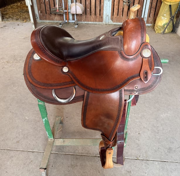 Verkaufe meinen Westernsattel von Deuber und Partner. War nur ein Jahr in Verwendung und wurde regelmäßig gepflegt. Nur kleine Gebrauchsspuren sind auf der Sitzfläche und bei den Steigbügeln erkennbar. Maße ist auf den Fotos erkennbar. Rechnung des Sattlers ist noch vorhanden. Der Sattel kann gerne ausprobiert werden. Weitere Fotos und Videos kann ich per Pn schicken Originalpreis >3000€ Preis ist verhandelbar!