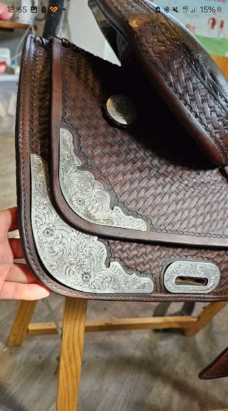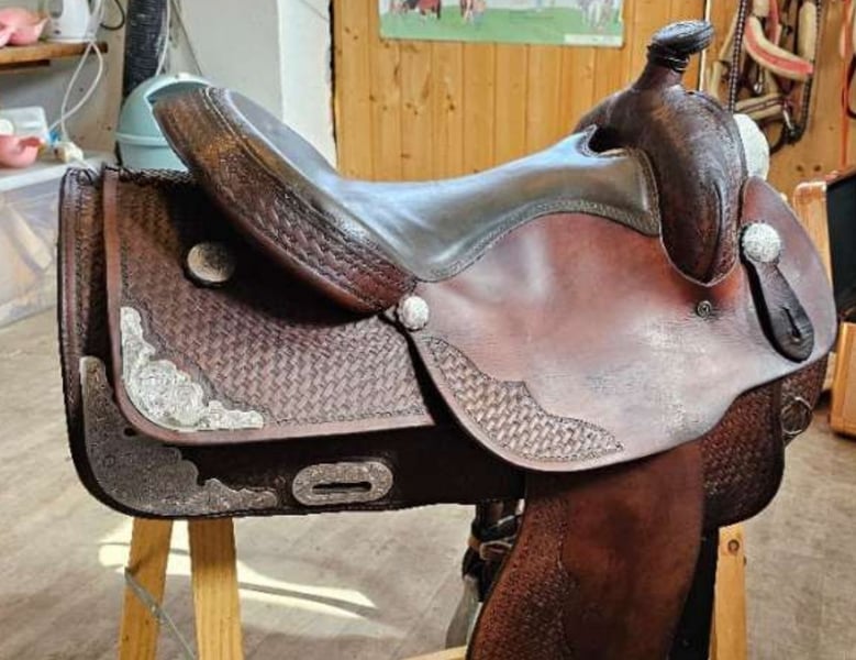 Verkaufe schönen Continental Westernsattel, Showsattel. Schon etwas älter aber in einem guten Zustand. Viele Silber Beschläge und Silberne Steigbügel. Sieht richtig toll aus. Leider passt er meinem neuen Pferd nicht. Ich habe ihn in denselben Zustand vor ca einem Jahr gebraucht um 1200,- gekauft gehabt. Lag auf breiteren Pferden (Huzule und Sportl. Kaltblut) Abmessungen siehe Fotos. Mitnahme nach Steyr, Waidhofen an der Ybbs und ab und zu auch nach Linz oder Amstetten möglich. Gegen hinterlassen vom Kaufpreis auch ausprobieren möglich.