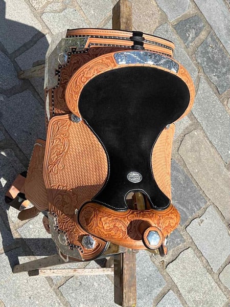 Verkaufe Showsattel wenig benutzt, in einwandfreiem Zustand, immer in Satteltasche aufbewahrt. 15,5 Zoll Sitzfläche Equitation Seat Der Sattel lag auf breitem Paint Horse. TEL. 0676/3110488