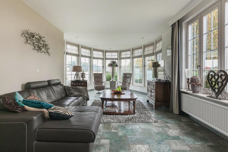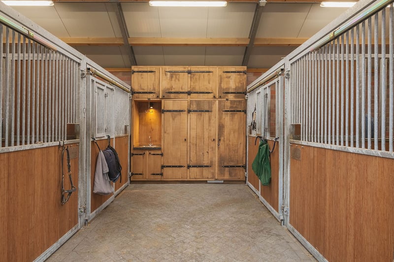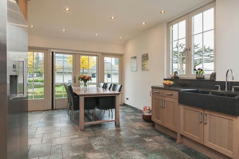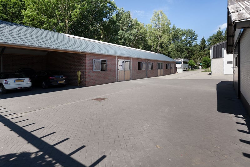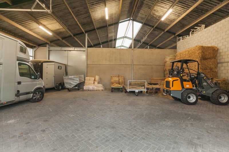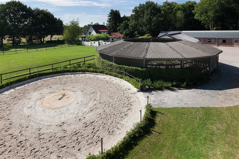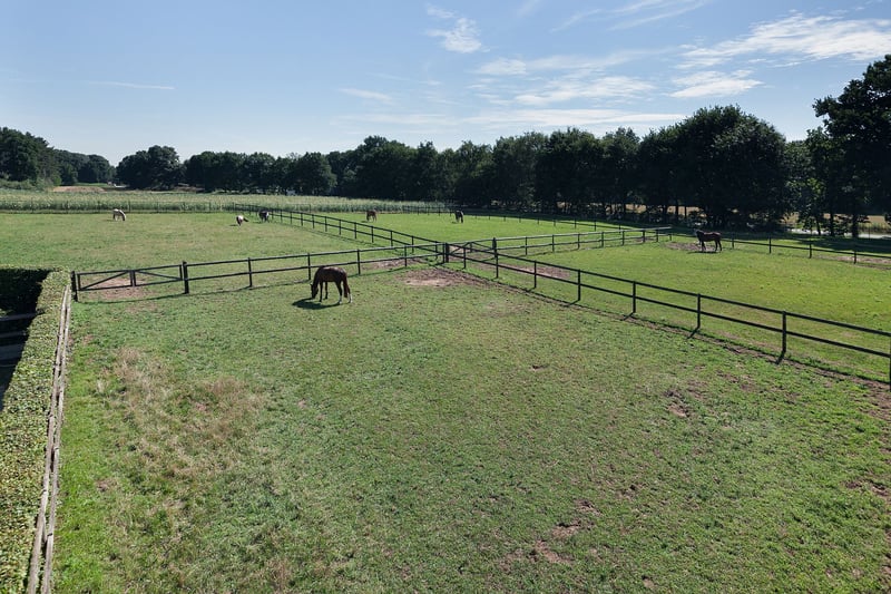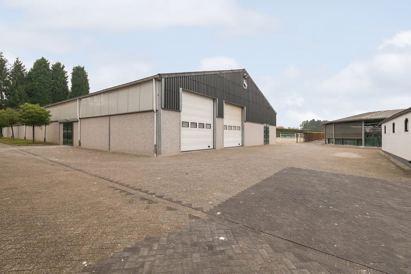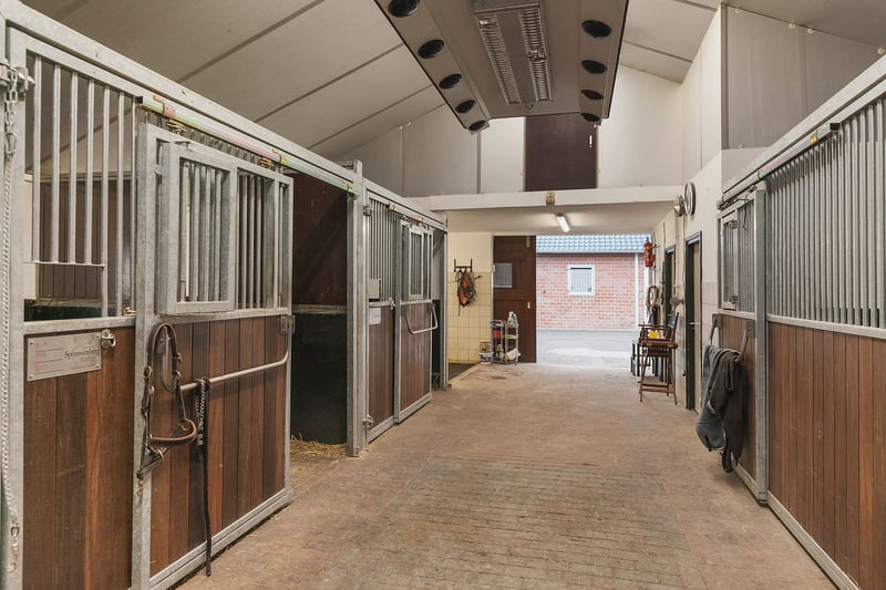 Complete equestrian property equipped with, among other things, a detached residence, an indoor riding arena with a storage/stable area and a 3-room apartment, 2 detached horse stables with a total of 13 horse boxes, an outdoor arena, a covered horse walker, a lunging circle and pastureland which is divided into several paddocks. RESIDENCE The detached house offers plenty of space and is arranged with a living room, kitchen-diner, utility room and a bedroom and bathroom on the ground floor. On the 1st floor there are three more bedrooms and a second bathroom. On the 2nd floor there is an attic space. Ground floor: The entrance hall of the house is equipped with a tiled floor with underfloor heating, plastered walls and a plastered ceiling with recessed lighting. The entrance provides access to the kitchen-diner, the toilet room and a storage/utility room. The toilet room is equipped with a floating toilet, a small washbasin and natural ventilation. The storage/utility room is finished with a tiled floor with underfloor heating, plastered walls and a plastered ceiling with recessed lighting. In the utility room there is also a kitchen unit with a sink and connections for washing appliances. The extended kitchen-diner enjoys plenty of natural light through large windows and French doors. These offer a beautiful view of the surrounding garden and the equestrian facilities behind it. The kitchen was modernised approximately 10 years ago and is fitted with a luxurious country-style kitchen layout, equipped with a granite worktop, a double sink, a gas stove (Boretti) with 4 burners, a griddle and a wide oven, an American refrigerator, a combi microwave, built-in coffee machine and a dishwasher. The kitchen-diner has a tiled floor, plastered walls and a plastered ceiling with recessed lighting. A corridor connects the kitchen-diner with the living room, the cellar and the master bedroom. From the corridor a fixed staircase provides access to the 1st floor. The corridor is finished with a tiled floor with underfloor heating, the walls are finished in granol and there is a plastered ceiling. The meter cupboard is also located in the corridor. The spacious living room has been extended and features a tiled floor with underfloor heating, plastered walls and a plastered ceiling with recessed lighting. Beautiful semi-circular windows provide plenty of natural light and offer a wonderful view over the pasture. A pellet stove provides additional atmosphere and warmth in the room. The spacious master bedroom is finished with a wooden floor, plastered walls and a plastered ceiling with recessed lighting. The bedroom has an en-suite bathroom. The fully tiled bathroom is equipped with a bathtub, a separate shower, a double fixed washbasin with storage cabinet, a floating toilet and a designer radiator. The plastered ceiling has recessed lighting. 1st floor: The landing provides access to 3 bedrooms and the second bathroom. From the landing, an enclosed fixed staircase provides access to the attic. Bedroom I and II are both spacious and feature a wooden floor, plastered walls and a panelled ceiling. In addition, both rooms have a practical built-in wardrobe and one of the rooms has a dormer window. The 2nd bathroom is fully tiled and equipped with a bathtub with shower option, a washbasin with storage cabinet and a toilet. A dormer window provides plenty of natural light. The landing provides access to 3 bedrooms and the second bathroom. Bedroom III is also finished with a wooden floor, plastered walls and a panelled ceiling. This room is also equipped with a fixed washbasin and a built-in wardrobe. 2nd floor: The attic on the second floor is accessible via a fixed staircase and is equipped with a wooden floor, an insulated roof and the installation of the central heating combi boiler. GARDEN The spacious garden surrounds the house and separates the living area from the equestrian facilities located behind it. The beautifully landscaped and atmospheric garden is well maintained and features a large lawn, border planting and decorative paving with baked bricks. The garden also includes a cosy terrace covered by espalier trees and a heated outdoor swimming pool (renewed). EQUESTRIAN FACILITIES The equestrian facilities consist, among other things, of a detached indoor riding arena with an apartment and storage/stable space, an indoor riding arena and two detached horse stables with a total of 13 horse boxes. Riding arena with indoor apartment and storage/stable space: The detached riding arena on the ground floor is arranged with an indoor arena, a large storage/stable area, a storage room, toilet room, two wash areas and a tack room. On the 1st floor there is a reception area/apartment with a kitchen, shower room, toilet room and 2 (bed)rooms. The storage room is finished with a brick floor and equipped with a simple kitchenette. The partly tiled toilet room is equipped with a toilet and the meter cupboard. Two wash areas have a brick floor and the walls are covered with rubber. The wash areas are equipped with hot and cold water. The heated tack room is finished with a brick floor and masonry walls. The irrigation pump for the indoor arena is located in the tack room. In the front part of the riding arena there is a large storage and stable space which is accessible from the yard through 2 electrically operated roller doors. This space is constructed with concrete elements and steel trusses. The roof is covered with asbestos-free corrugated sheets. The floor is paved with bricks. A sliding door provides direct access to the indoor arena located behind it. The indoor arena (approx. 21 x 40 m) is equipped with a professional surface and an irrigation installation. The riding arena is constructed with concrete elements and steel trusses and the roof is covered with asbestos-free corrugated sheets. A skylight has been installed in the ridge of the roof. A sliding door in the side wall provides access to the yar
