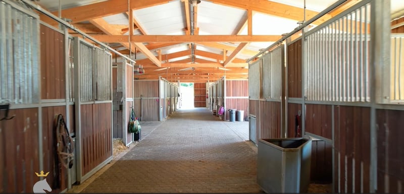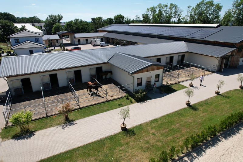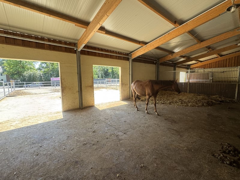 Zum Verkauf steht eine erstklassige Reitanlage im Herzen eines der wirtschaftlich und infrastrukturell attraktivsten Gebiete Deutschlands – ideal gelegen im Einzugsgebiet der Metropolregionen Bonn und Köln. Die Reitanlage vereint auf einzigartige Weise moderne Architektur, durchdachte Funktionsabläufe und höchste Bauqualität mit einem stilvollen Ambiente und vielfältigen Nutzungsmöglichkeiten. Ob Pferdesportzentrum, Ausbildungs- und Handelsbetrieb oder Veranstaltungsstätte – diese Immobilie erfüllt alle Anforderungen eines zukunftsorientierten Pferdebetriebs. Die Anlage befindet sich in verkehrsgünstiger Lage, nur wenige Minuten von der Autobahn entfernt. Dies garantiert eine optimale Erreichbarkeit für Kunden, Teilnehmer und Lieferanten – ein entscheidender Vorteil im operativen Alltag und bei Veranstaltungen. Das gesamte Anwesen wurde vor wenigen Jahren nach neuesten Standards konzipiert und gebaut. Der Fokus lag dabei auf Funktionalität, Wirtschaftlichkeit und artgerechter Pferdehaltung. Hochwertige, massive Bauweise trifft auf energieeffiziente Planung – kurze Wege und durchdachte Infrastruktur ermöglichen einen kostenoptimierten Betrieb bei gleichzeitig hohem Komfort für Pferd, Reiter und Personal. Herzstück der Anlage ist die großzügige Reithalle mit den Maßen 20 x 60 Metern. Die Halle ist lichtdurchflutet, verfügt über einen hochwertigen Reitboden, automatische Bewässerung und eine vollständig verspiegelte kurze Seite. An einer Stirnseite befinden sich ein Büro, das multifunktional als Meldestelle bei Turnieren, Verwaltungsbüro oder gastronomischer Bereich genutzt werden kann, sowie eine große Zuschauertribüne mit hervorragender Sicht auf das Geschehen. An der gegenüberliegenden Stirnseite schließt sich eine geräumige Maschinen- und Raufutterhalle sowie eine durchdacht integrierte Misthalle an. Ein direkt angebauter Boxentrakt mit breiter Stallgasse rundet das funktionale Hauptgebäude ab. Zusätzlich findet sich in diesem Gebäude auch eine Mitarbeiterwohnung. Insgesamt bietet die Anlage Platz für etwa 60 Pferde. Es stehen überwiegend großzügige, lichtdurchflutete Boxen zur Verfügung, nahezu alle mit einem Maß von 4 x 4 Metern und ein Teil davon mit vorgelagerten, überdachten Paddocks von 4 x 8 Metern. Der Großteil der Boxen ist mit modernen Futterautomaten für Kraftfutter ausgestattet und zeichnen sich durch ein optimales Stallklima aus. Ergänzend dazu gibt es mehrere großzügige Laufställe, die eine flexible Belegung ermöglichen – sei es für Zuchtstuten, Jungpferde oder Gruppenhaltung. Für das tägliche Training und die Bewegung der Pferde steht neben der Reithalle ein exzellenter Außenreitplatz mit Ebbe-Flut-System zur Verfügung. Mit seinen Maßen von 40 x 70 Metern und einem erstklassigen Reitboden erfüllt dieser Platz höchste Ansprüche. Weitere befestigte Bewegungspaddocks sowie ein separater kleinerer Platz für Longieren oder Freiarbeit ergänzen das Areal. Die direkt arrondierten Weideflächen bieten zusätzliche Möglichkeiten zur artgerechten Pferdehaltung. Die gesamte Infrastruktur ist auf Effizienz und Rentabilität ausgelegt. Ein innovatives Mistsystem sorgt für erheblichen Personal- und Zeitgewinn: Der Mist wird direkt aus den Boxen über ein Bodenloch in eine Verarbeitungsanlage geleitet, wo er zerkleinert und automatisch entsorgt wird. Dies spart nicht nur Kosten, sondern erhöht auch die Hygiene im gesamten Stallbereich. Ein weiteres Highlight der Reitanlage ist das harmonisch in das Gelände eingebundene Betriebsleiterhaus. Dieses massiv errichtete, im modernen Fertigbau realisierte Wohngebäude überzeugt durch seinen stilvollen Auftritt und hohe Funktionalität. Es erstreckt sich über zwei Ebenen und ist ideal für Betriebsleiter, Familie oder Personal. Die moderne Gestaltung mit klaren Linien, großflächigen Fensterfronten und lichtdurchfluteten Räumen sorgt für ein angenehmes Wohnambiente. Von nahezu allen Zimmern genießt man einen wunderbaren Blick über die Reitanlage. Beheizt wird das Gebäude umweltfreundlich über eine leistungsfähige Wärmepumpe. Eine große, elegante Terrasse sowie ein liebevoll angelegter Teich bieten zusätzliche Lebensqualität direkt vor der Haustür. Selbstverständlich verfügt die gesamte Reitanlage über sämtliche notwendigen Neben- und Funktionsräume, die für einen professionellen Betrieb erforderlich sind – großzügige Waschplätze, Sattel- und Futterkammern, Lagerräume, Sanitäranlagen sowie ausreichend Garagen und Stellplätze für Pkw und Anhänger. Die durchdachte und großzügige Planung ermöglicht reibungslose Abläufe, selbst bei hohem Betriebsaufkommen oder Veranstaltungen. Dank der attraktiven Lage und der hervorragenden Infrastruktur ist die Reitanlage nicht nur funktional und stilvoll, sondern auch wirtschaftlich höchst interessant. Die regional übliche Boxenmiete beginnt bereits bei 700,- Euro monatlich, was ein stabiles und attraktives Einkommen garantiert. Darüber hinaus bietet das Objekt vielfältige Einkommensquellen: Pferdeausbildung, Handel, Beritt, Lehrgänge, Vermietung – oder die Ausrichtung von Veranstaltungen. Die Anlage ist als Turnierstandort erprobt: Mehrfach wurden hier bereits internationale Reitturniere mit großem Erfolg durchgeführt. Fazit: Diese Reitanlage ist eine seltene Gelegenheit für Investoren, Pferdesport-Enthusiasten oder Unternehmer, die eine hochmoderne, wirtschaftlich geführte und vielseitig nutzbare Reitsportimmobilie erwerben möchten. Die Verbindung aus perfekter Lage, erstklassiger Ausstattung und großem wirtschaftlichem Potenzial macht dieses Objekt zu einem echten Highlight auf dem Markt. Kurzübersicht – Moderne Reitanlage bei Bonn/Köln Lage: •Bestlage im Einzugsgebiet von Bonn und Köln •Sehr gute Anbindung, nahe der Autobahn •Ruhige, ländliche Umgebung mit optimaler Erreichbarkeit Gebäude & Infrastruktur: •Baujahr: vor wenigen Jahren •Hochwertige, massive Bauweise •Modernes, d