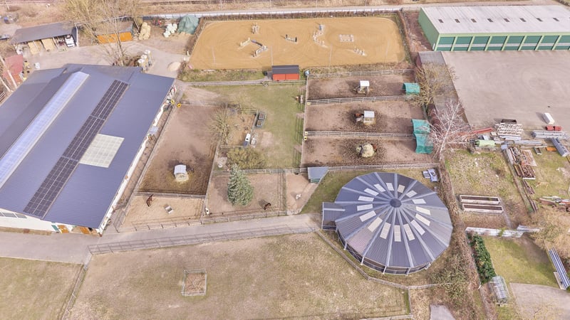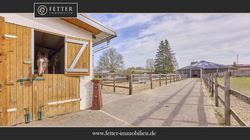 Bitte füllen Sie das nachfolgende Kontaktformular vollständig aus bevor Sie uns telefonisch kontaktieren. Vielen Dank für Ihr Verständnis! Reitanlage in Dannenberg (Elbe) im Landkreis Lüchow-Dannenberg mit bereits sanierten Stallungen und Reithalle zu verkaufen! Objektbeschreibung: Zum Verkauf steht eine umfassend sanierte Reitanlage in Dannenberg (Elbe) auf einem Grundstück von ca. 14.792 m². Die gesamte Hofanlage wurde zwischen 2021 und 2023 modernisiert, insbesondere sämtliche Dachflächen erneuert, wodurch sich die Anlage in einem deutlich aufgewerteten Gesamtzustand präsentiert. Das Wohnhaus aus dem Jahr 1968 verfügt über drei Wohneinheiten mit ca. 160 m² Wohnfläche und ist voll unterkellert. Die Bausubstanz ist massiv, der Zustand jedoch sanierungsbedürftig und bietet Entwicklungspotenzial. Beheizt wird über Strom-Nachtspeicheröfen. Vor dem Haus befinden sich PKW-Stellplätze sowie eine Einzelgarage. Eine Terrasse mit Gartenblick und ein Balkon im Obergeschoss runden das Wohnangebot ab. Die Stallungen (überwiegend Baujahr 1956) wurden 2021–2023 saniert und umfassen 4 Laufstallboxen (6×5 m), 13 Fensterboxen und 10 Innenboxen. Ergänzt werden Sattel- und Futterkammern sowie Wasch- und Putzplätze. Die Reithalle (20×40 m, Baujahr 1955) verfügt über einen hochwertigen Sand-/Vliesboden, LED-Beleuchtung und eine Beregnungsanlage der Firma Buchholz. 2023 wurde auf die sanierte Dachfläche eine PV-Anlage mit 29 kWp inkl. Pufferspeicher installiert (Eigenstromnutzung, Laufzeit bis 2043). Ergänzend steht eine Longierhalle (Ø 20 m, 2023) mit Stahlkonstruktion (Firma Molenkönig), sowie ein 30×70 m Reitplatz (2020, drainiert, beregnet, eingezäunt) zur Verfügung. Eine Bergehalle (2022, ca. 200 m²) ergänzt die Anlage. Direkt am Hof befinden sich Gras- und Sandpaddocks, die den Pferden kurze und komfortable Wege ins Freie ermöglichen. Weitere 1,5 ha können zusätzlich erworben werden. Die technische Ausstattung der Anlage rundet den professionellen Gesamteindruck ab und sorgt für einen effizienten, gut organisierten Betriebsablauf im täglichen Reit- und Stallmanagement. Ausstattung: Wohnhaus: - Baujahr: 1968, 3 Wohneinheiten - Wohnfläche: ca. 160 m² - Zustand: sanierungsbedürftig - Heizung: Strom (Nachtspeicheröfen) - Unterkellerung: voll unterkellert - Fenster: Doppelverglasung, Holz - Parkplätze für PKWs vor dem Haus, Einzelgarage - Gemütliche Terrasse mit Blick zum Garten, Balkon im 1.OG Stallungen: - Baujahr Gebäude: 1956, Saniert 2021 – 2023 - 4 Laufstallboxen (6 x 5 Meter) - 13 Fensterboxen - 10 Innenboxen - Sattelkammer und Futterkammer im Gebäude vorhanden - Waschplatz / Putzplätze - Dach: Trapezblech (Sandwichplatten mit 60 mm Stärke) aus 2021-2023 - Hersteller: Große Winkelmann Reithalle: - Baujahr: 1955 - Reitmaß: 20 x 40 Meter - Boden: Sand-/Vliesgemisch - Beleuchtet - Beregnungsanlage der Firma Buchholz - Holzkonstruktion - Dach: Trapezblech (Sandwichplatten mit 60 mm Stärke) aus 2021-2023 - Photovoltaikanlage: Aus dem Jahr 2023, 29 kWp, Pufferspeicher vorhanden (Eigennutzung), Laufzeit Ende 2043 Longierhalle: - Baujahr: 2023 - Durchmesser: 20 Meter - Boden: Sand-/Vliesgemisch - Beleuchtet - Beregnunganlage der Firma Buchholz - Stahlkonstruktion - Hersteller: Molenkoning Reitplatz: - Baujahr: 2020 - Reitmaß: 30 x 70 Meter - Boden: Sand-/Vliesgemisch, drainiert - Beregnungsanlage vorhanden - Einzäunung Weiteres: - Bergehalle, Baujahr: 2022 mit ca. 200 m² Bruttogrundfläche - Gras- und Sandpaddocks - Mistentsorgung per Container, geht wöchentlich zur Biogasanlage - Solarium inkludiert - Laufband inkludiert Lage: Dannenberg (Elbe) ist eine Stadt im Landkreis Lüchow-Dannenberg im äußersten Osten Niedersachsens. Die Stadt Dannenberg ist Mitgliedsgemeinde und Sitz der Samtgemeinde Elbtalaue. Die Stadt ist verkehrstechnisch über mehrere Bundesstraßen gut an das regionale und überregionale Straßennetz angebunden. Die Bundesstraßen B191, B216 und B248 verbinden die Stadt mit den umliegenden Mittelzentren wie Lüneburg, Uelzen und Salzwedel sowie mit weiter entfernten Oberzentren wie Hamburg, Hannover und Berlin. Im öffentlichen Nahverkehr besteht eine Anbindung über die Wendlandbahn. Dannenberg (Elbe) im Landkreis Lüchow-Dannenberg bietet eine ruhige, ländlich geprägte Lebensqualität mit einer soliden Grundversorgung und einem starken Bezug zur Natur. Für den Einkauf stehen mehrere Supermärkte, Bäckereien, Drogerien und kleinere Fachgeschäfte zur Verfügung. Ergänzt wird das Angebot durch regionale Anbieter und Wochenmärkte, auf denen frische Produkte aus der Umgebung verkauft werden, sodass die Nahversorgung insgesamt gut abgedeckt ist. Auch Familien finden in Dannenberg eine verlässliche Infrastruktur: Es gibt mehrere Kindertagesstätten und Kindergärten mit unterschiedlichen Betreuungs- und pädagogischen Konzepten sowie ein gutes schulisches Angebot mit Grundschulen, Oberschulen und einem Gymnasium, sodass auch höhere Bildungsabschlüsse direkt vor Ort möglich sind. Die medizinische Versorgung ist ebenfalls gegeben, unter anderem durch Haus- und Fachärzte sowie Apotheken, die die Versorgung mit Medikamenten sicherstellen; für spezialisierte Behandlungen werden die umliegenden größeren Städte wie Lüneburg oder Uelzen genutzt. Der Freizeit- und Kulturbereich ist stark von der naturnahen Lage geprägt: Die Elbtalaue bietet ideale Bedingungen für Spaziergänge, Radfahren, Reiten oder Wassersport, während lokale Vereine, Veranstaltungen, Märkte und kleinere kulturelle Angebote das gesellschaftliche Leben bereichern. Insgesamt verbindet Dannenberg eine ruhige, naturverbundene Wohnlage mit einer funktionierenden Infrastruktur und einem aktiven Gemeinschaftsleben. Energieausweis: Wesentlicher Energieträger: Strom (Nachtspeicheröfen im Haus) Bedarfsausweis Endenergieverbrauch: 131,03 kWh/(m²*a) Energieeffizienzklasse: E Baujahr laut Energieausweis: 1968, Energieerzeuger aus 1980 - 2010 Weitere Informationen: 