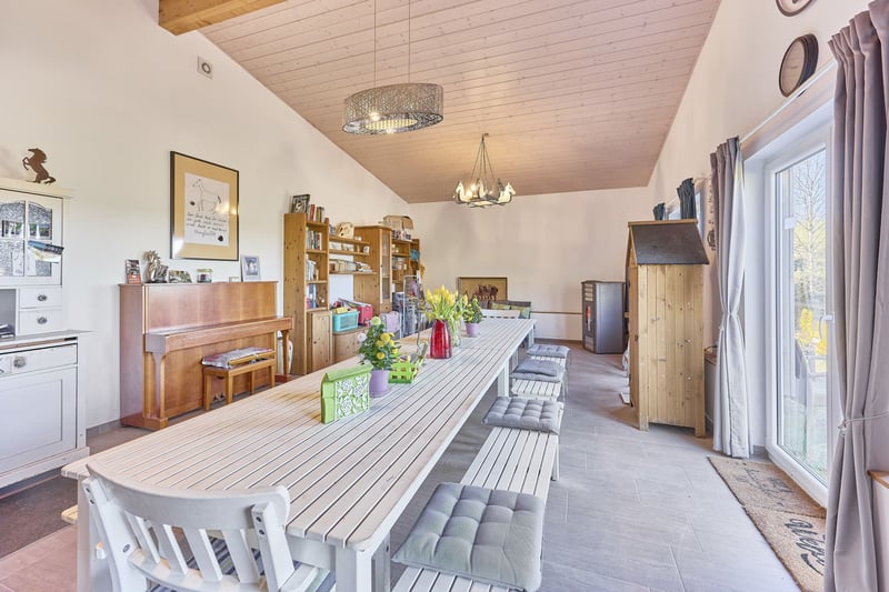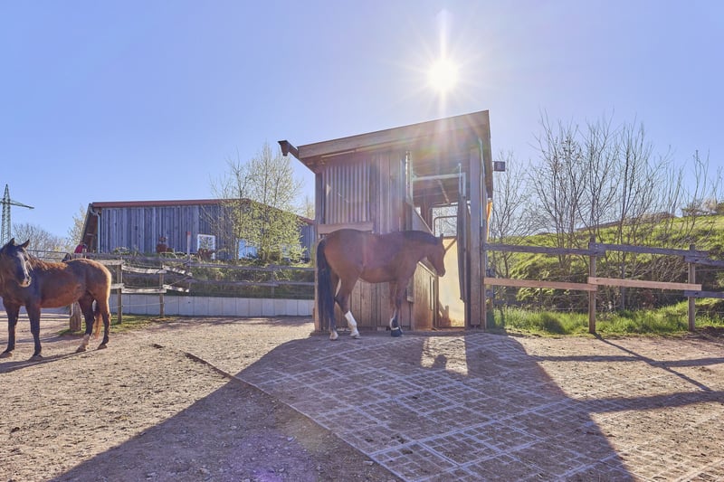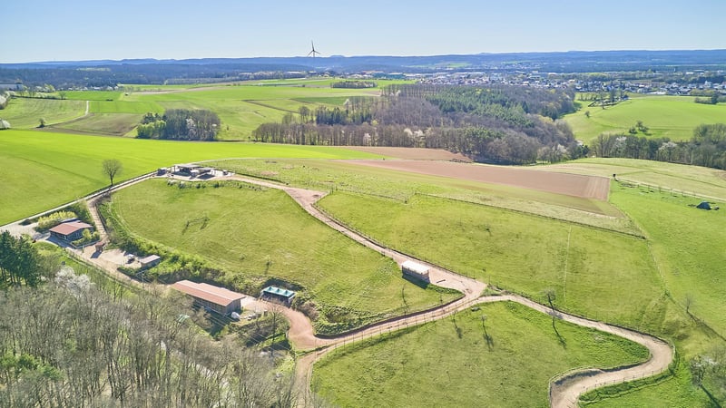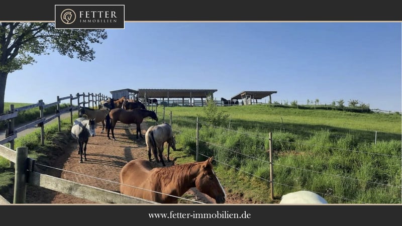 Bitte füllen Sie das nachfolgende Kontaktformular vollständig aus bevor Sie uns telefonisch kontaktieren. Vielen Dank für Ihr Verständnis! Reitanlage in Rheinland-Pfalz zu verkaufen – Aktivstall, modernes Wohnhaus, Reithalle & artgerechte Pensionspferdehaltung! Objektbeschreibung: Diese neuwertige und durchdacht angelegte Reitanlage in Rheinland-Pfalz im Donnersbergkreis bietet ideale Voraussetzungen für pferdegerechtes Leben und Arbeiten in ruhiger, naturnaher Umgebung. Im Zentrum des Anwesens befindet sich ein modernes Einfamilienhaus im Landhausstil, das 2016 erbaut wurde. Mit 161 m² Wohnfläche und als Niedrigenergiehaus KfW 70 bietet es zeitgemäße Architektur, hochwertige Materialien und ein gemütliches Wohnambiente. Es ist der ideale Lebensmittelpunkt – sowohl für die Betreiber:innen der Reitanlage als auch als komfortables Zuhause für die ganze Familie. Das Wohnhaus ist glücklicherweise etwas versetzt von der Reitanlage erbaut worden, sodass man genügend Privatsphäre genießt. Das Herzstück der Reitanlage bildet der rund 6.000 m² große HIT-Aktivstall, der 2019 mit 7 goldenen Sternen der LAG ausgezeichnet wurde. Hier finden bis zu 30 Pferde in einem gemischten Herdenverband optimale Bedingungen vor: überdachte Heu- und Wasserstationen (beheizt), eine großzügige Liegehalle, Sandwälzplatz, Barhufpfad sowie ein durchgehend matschfreier Auslauf mit Spiel- und Ruhebereichen. Für Reiter:innen ist die Anlage durchdacht ausgestattet: eine beheizte, alarmgesicherte Sattelkammer mit persönlichem Spind pro Pferd, ein Putzplatz mit Waschbox und Solarium sowie eine zweite Außendusche sorgen für Komfort im Alltag. Ein gemütliches Reiterstübchen mit Küchenzeile, Kamin, Leseecke und Sonnenterrasse mit Blick auf die Anlage lädt zum Verweilen ein oder kann für Seminare genutzt werden. Die Trainingsmöglichkeiten lassen keine Wünsche offen: eine helle, luftige Reithalle (20×40 m, 2022) und ein sanierter Roundpen (Ø 19 m, 2023) bieten ideale Bedingungen für das tägliche Training. Direkt angrenzend beginnt ein weitläufiges Ausreitgelände am Rande des Pfälzer Waldes mit abwechslungsreichen Wegen für Einsteiger und Fortgeschrittene. Das gesamte Anwesen erstreckt sich über ein Grundstück von 66.409 m² im Eigentum. Weitere gepachtete Flächen ergänzen die Anlage ideal, insbesondere für Weidewirtschaft und zusätzliche Flexibilität. Diese Reitanlage vereint hochwertiges Wohnen, professionelle Pferdehaltung und naturnahe Freizeitmöglichkeiten – ein Rundum-Paket für Pferdeliebhaber:innen, die Komfort, Funktionalität und Qualität schätzen. Ausstattung: Wohnhaus: - Baujahr: 2016 - Wohnfläche: 161 m² - Küche: Landhausküche aus 2016, Induktionsherd und Gaskochfeld - Heizung: Gas, Brennwerttherme, Solarthermie zur Warmwasserunterstützung, Fußbodenheizung, zusätzlicher Kaminofen - Bauweise: Holzständerbauweise, Niedrigenergiehaus KfW 70 - Fenster: Dreifachverglasung, Kunststoff, Sprossenfenster - Boden: Parkett und Fliesen - Unterkellerung: Nicht unterkellert - Garten mit Sonnenterrasse und überdachter Lounge - KFZ Stellplätze auf dem Grundstück HIT-Aktivstall: - 2019 mit 7 goldenen Sternen der LAG ausgezeichnet! - Baujahr: 2016 - Auslauffläche für Pferde: ca. 5.600 m² - Pferdeanzahl: 30 Pferde (davon 5 Paddockboxen zur Integration) - Kraftfutterautomat, Selektionstore, angrenzende Weidefläche, mehrere überdachte Wasser- und Heustationen (beheizt, Leitungswasser) - Großzügige Liegehalle mit angrenzender überdachter Mistplatte - Mehrere Sandwälzplätze, Barhufpfad mit unters. Bodenbeschaffenheiten - ca. 650 Meter langer Trail Reithalle: - Baujahr: 2022, Panoramareithalle - Reitfläche: 20 x 40 Meter - Boden: Nordseeboden - Hersteller: Hörmann (Leimbinder, Stahl) - Beregnungsanlage vorhanden Wirtschaftsgebäude: - Baujahr: 2016 - Sattelkammer (einbruchssichere Tür WK 2 mit elektrischem Schließzylinder) - Überdachte Putzplätze Indoor & Outdoor und Waschbox (Warmwasser) - Großes Reiterstübchen / Seminarraum mit Küche und WC, Technikraum, Deckenkammer, Futterkammer Gastpferdebereich (neben Reithalle): - Baujahr: 2016 - 4 Paddockboxen, wird derzeit aber als Offenstall genutzt (bietet jedoch eigentlich eine separate Stall-Einheit mit eigener Sattelkammer) - Ideal für Gastpferde z.B. bei Lehrgängen oder als Reha-Bereich - befestigter Offenstallbereich mit Heuraufe Longierzirkel: - Baujahr: 2023 - Durchmesser 19 Meter - Boden: Hackschnitzel Sand Gemisch Rundbogenhalle: - Baujahr: 2016 - Fläche: 250 m² / Platz für ca. 342 Rundballen - Geschotterter Untergrund, 3 Seiten geschlossen - Zelthalle Weiteres & Pachtflächen: - Sole-Inhalationszelt für 2 Pferde - Pferdedeckentrockner - ca. 1 ha Pachtwiesen Lage: Die Reitanlage befindet sich im westlichen Teil des Donnersbergkreises in Rheinland-Pfalz (Wartenberg-Rohrbach) – eingebettet in eine naturnahe Umgebung mit gleichzeitig hervorragender infrastruktureller Anbindung. Die nächstgelegene Autobahnauffahrt zur A63 liegt nur wenige Minuten entfernt und bietet eine schnelle Verbindung in Richtung Mainz, Kaiserslautern und zur A6. Der nahegelegene Bahnhof mit Anbindung an die Strecke Kaiserslautern–Bad Kreuznach sorgt zudem für eine gute Erreichbarkeit mit dem Zug. Die Umgebung zeichnet sich durch ein aktives, gut vernetztes Gemeindeleben aus. Trotz ihrer überschaubaren Größe bietet die Region vielfältige Vereinsaktivitäten, kulturelle Veranstaltungen und ein starkes ehrenamtliches Engagement. Von Sportvereinen über Dorffeste bis hin zu saisonalen Märkten – die soziale Struktur ist lebendig und familiär. Die landschaftlich reizvolle Lage im Nordpfälzer Bergland lädt zu Outdoor-Aktivitäten wie Wandern, Ausreiten und Radfahren ein und bietet Erholung direkt vor der Haustür. Die Nähe zur Stadt Kaiserslautern (ca. 15 Autominuten) verbindet das ländliche Leben mit den Vorteilen urbaner Infrastruktur – darunter Einkaufsmöglichkeiten, medizinische Versorgung, kulturelle Angebot