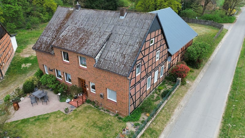 Description: This historic estate in the idyllic village of Gohlau offers a living environment that is increasingly rare today: nearly 7,000 square meters of natural land, a large meadow, an impressive tree population including a majestic oak, and a small private woodland. A microcosm for those seeking peace, freedom, and authentic quality of life—whether for family, animals, self-sufficiency, or a creative residential and working concept. The main house, built around 1900, comprises approximately 250 square meters of living space and offers an exceptional amount of room with its 8 rooms. Here, spaces can be individually designed: from a spacious family home to multi-generational living or combining living and working under one roof. The solid structural framework and historic charm give this house a distinctive character, while the renovation needs provide room for personal ideas and customization. A true highlight is the large barn with five horse stables, hay storage, storage areas, and open-use possibilities—ideal for equine keeping, workshop activities, hobby projects, or as an artist’s studio. Additionally, a separate stable building offers further options. The biomass heating system installed in 2020 ensures sustainable, independent, and efficient warmth. This makes the estate not only a natural retreat but also energetically modernized. Whether as a horse farm, self-sufficient project, family idyll, or creative retreat—this property enables living dreams that are hardly achievable with conventional real estate. FEATURES: Exterior & Land: - Approximately 6,997 m² of land, mostly meadow and natural landscape - Private small woodland on the property - Large garden area with historic oak - Versatile spaces for animal husbandry, vegetable cultivation, self-sufficiency, or outdoor projects - Sun terrace adjacent to the house Main House: - About 250 m² of living space, approximately 331 m² of usable space - 8 rooms, including 6 bedrooms - 2 bathrooms - Spacious country kitchen - Historic features with great potential Barn & Stables: - Large barn with: - 5 horse stables - Hay storage - Storage rooms - Workshop/studio possibilities Additional Stable Building: - Covered shelter for vehicles or machinery Technology & Sustainability: - Biomass heating system (wood), installed in 2020 - Large buffer tank (approx. 2,000 liters) - Solid construction - Classic estate architecture LOCATION: The property is situated in the small district of Gohlau, part of the municipality of Waddeweitz in the popular Wendland region. The area is characterized by expansive, pristine landscapes, cultural richness, and a high quality of life. Here, you live in an environment that perfectly combines tranquility, privacy, and natural experience. The landscape invites walks, riding, cycling tours, and outdoor living. The surrounding round village communities, regional cultural engagement, and the typical Wendland architecture create a harmonious, slowed-down lifestyle. Shopping facilities, schools, kindergartens, and medical services are available in Zernien, Lüchow, and Dannenberg. A daycare center is located in nearby Waddeweitz. The natural swimming pond Wittfeitzen is within cycling distance. Larger cities such as Lüneburg or Uelzen are easily accessible. Especially attractive for commuters: the quiet location allows for relaxed home-office work in absolute nature. Gohlau is ideal for those wishing to escape everyday life without sacrificing connectivity. OTHER INFORMATION: Numerous renovations and modernizations have already been carried out on this beautiful estate: - Windows & front door: double-glazed insulation (approx. 1994-2004) - Electrical system throughout the house (approx. 1994-2004) - Bathroom renovations (early 2000s) - Heating: biomass boiler including 2,000-liter buffer tank (2020) - Barn roof: renewed around 2000 - Stable roof: renewed around 2018 - Garden water supply available - Community wastewater treatment in the village via a GmbH since 2007 (annual fee: €50) This offer is subject to commission. A commission of 3.57% (including VAT) of the purchase price is payable after notarization of the purchase contract. An identical agreement has been made with the seller. Subject to change and prior sale. The energy performance certificate is valid until February 2, 2034. The final energy demand is 289.5 kWh/(m²·a) (Class: H), and the primary energy demand is 79.7 kWh/(m²·a) (Class: C). The certificate will be presented during viewings.
