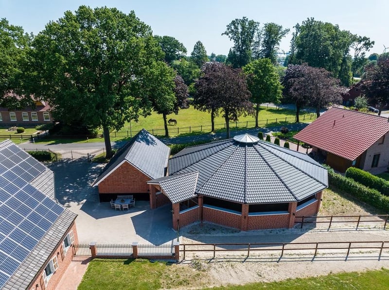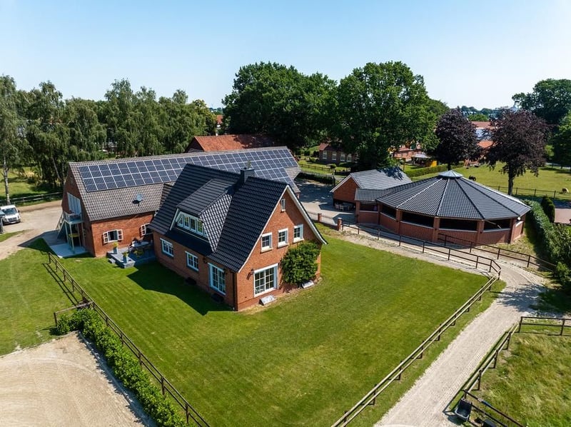 Zum Verkauf steht ein außergewöhnliches Anwesen, das komfortables Wohnen mit einer voll ausgestatteten, professionellen Reitanlage verbindet. Neben dem Wohnhaus gibt es zusätzliche Wohneinheiten zur Vermietung. Die Reitanlage bietet umfangreiche Trainings- und Haltungsmöglichkeiten. Ein Gesamtobjekt, das Wohnen und Reitsport auf ideale Weise vereint. - Grundstück 15.320 m² - Wohnhaus ca. 210 m² - 21 Pferdeboxen - Waschplatz mit Solarium - Ebbe/Flut Reitplätze mit Rennbahn - Freilauf Führmaschine mit automatischer Beregnung - Ebbe/Flut Longierplatz Wenn Sie Interesse haben oder weitere Informationen wünschen, freuen wir uns auf Ihre Kontaktaufnahme.