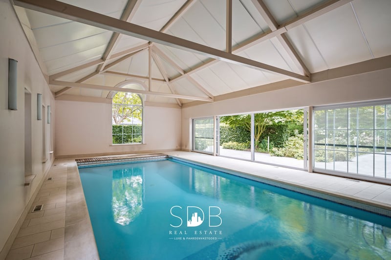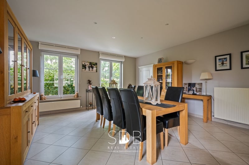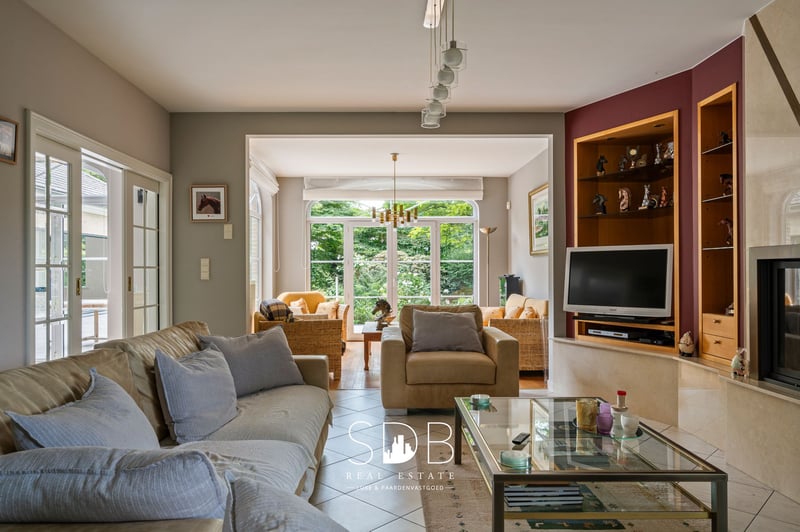 Located in Haasdonk, a sub-municipality of Beveren in the heart of the Waasland region, this stunning country estate with equestrian facilities is set on a plot of 15,804 m². With excellent connections to nearby cities such as Antwerp and Ghent, Haasdonk offers an ideal residential environment. The entrance hall reflects the rural elegance and character of the home. To one side, you’ll find access to the office, and to the other, the living room. The spacious living area is divided into a cosy dining space and two inviting sitting areas, one of which is centered around a wood-burning fireplace. Large windows flood the room with natural daylight. The contemporary kitchen is fully equipped with all modern conveniences. With an adjacent utility room, this kitchen combines sleek modern design with practical efficiency and also benefits from plenty of natural light. On the ground floor, there is a compact bathroom fitted with a single washbasin and a shower. On the first floor, there are four generous bedrooms. The master bedroom features its own spacious en-suite bathroom as well as a private rooftop terrace — a unique spot offering panoramic views. This large bathroom includes a double washbasin, bathtub, shower, and toilet. The second bathroom is equipped with two washbasins, a bathtub, a shower, and a toilet. On the second floor, you’ll find the attic, which has been fully converted into a functional living space suitable for a variety of uses. This magnificent estate also boasts an exclusive indoor swimming pool — the perfect place to relax and enjoy all year round. Large windows create a bright, open atmosphere and provide a seamless connection with the outdoors. The integrated garage offers space for up to three vehicles and houses the utilities for both a washing machine and dryer. Outside, you’ll be immersed in a park-like setting. Ornamental plants, shaded trees, and atmospheric terraces invite you to relax and unwind, alongside a pleasant family garden. At the rear of the property, there is a stable building with six horse boxes, a tack room which also serves as a feed room, and ample storage for hay and straw. The adjacent outdoor arena measures 36 x 70 metres — offering ample space for daily training, ideal for both recreational and competitive riding. The surrounding grass paddocks provide daily turnout for the horses, some of which are subdivided into individual paddocks. All are securely enclosed with wooden fencing. This exceptional estate offers all the facilities a horse lover or animal enthusiast could dream of. Thanks to its ideal location and private character, you can enjoy peace, comfort, and authenticity every single day. Interested in the charm of this characterful country estate with equestrian facilities? Or in the unique living experience it offers, surrounded by nature, prestige, and style? Don’t hesitate to contact us. www.sdb.realestate