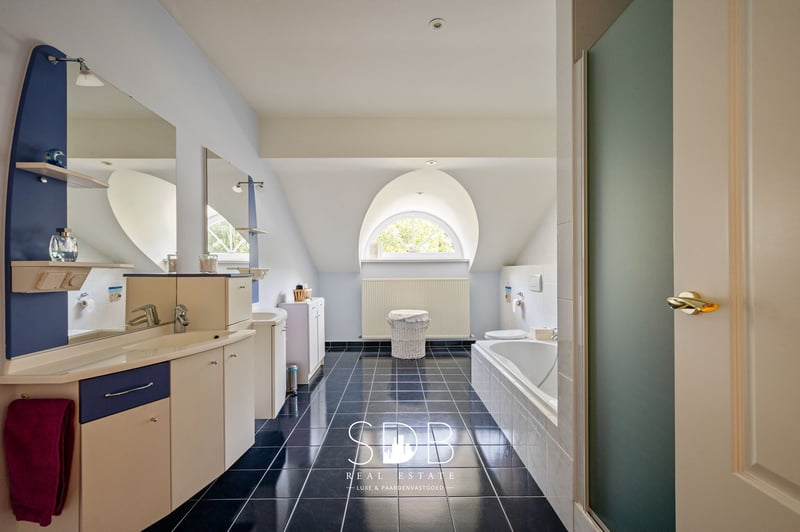 Haasdonk, dzielnica Beveren położona w sercu Waasland, to miejsce, gdzie można znaleźć ten piękny dom wiejski z zapleczem dla koni na powierzchni 15 804 m². Dzięki doskonałym połączeniom z okolicznymi miastami takimi jak Antwerpia i Gand, Haasdonk oferuje idealne miejsce do zamieszkania. Przedpokój odzwierciedla wiejską elegancję i charakter domu. Z jednej strony znajduje się dostęp do biura, a z drugiej do salonu. Przestronny salon podzielony jest na przytulną jadalnię i dwie klimatyczne strefy wypoczynkowe, z których jedna otoczona jest centralnie umieszczonym kominkiem na drewno. Liczne okna zapewniają obfitość naturalnego światła dziennego. Nowoczesna kuchnia wyposażona jest we wszystkie niezbędne urządzenia. Ta kuchnia, połączona z pomieszczeniem gospodarczym, łączy elegancki, współczesny design z praktyczną funkcjonalnością i cieszy się zdrową ilością światła dziennego. Na parterze znajduje się mała łazienka z umywalką i prysznicem. Na pierwszym piętrze znajdują się cztery przestronne sypialnie. Główna sypialnia ma własną dużą łazienkę oraz prywatny taras na dachu, z którego roztacza się panoramiczny widok. Ta przestronna łazienka wyposażona jest w podwójne umywalki, wannę, prysznic i toaletę. Druga łazienka posiada dwie umywalki, wannę, prysznic i toaletę. Na drugim piętrze znajduje się poddasze, które jest w pełni wyposażoną przestrzenią mieszkalną, nadającą się do różnych zastosowań. Ten piękny dom wiejski posiada także ekskluzywne kryte baseny – idealne miejsce do relaksu i korzystania przez cały rok. Okna zapewniają jasną, otwartą atmosferę i tworzą płynne połączenie z przestrzenią na zewnątrz. Podwójny garaż mieści aż trzy samochody! Znajdują się tu również instalacje do prania i suszenia. Na zewnątrz panuje niemal parkowa atmosfera. Eleganckie nasadzenia, zacienione drzewa i klimatyczne tarasy zachęcają do odpoczynku i relaksu, a obok znajduje się przyjemny ogród rodzinny. Z tyłu, na działce, znajduje się budynek stajni wyposażony w 6 boksów, z boksami na siodła, magazynem na paszę oraz możliwością przechowywania siana i słomy. Przybudowana zewnętrzna arena treningowa ma wymiary 36 x 70 m, co zapewnia przestrzeń do codziennych treningów, idealną do rekreacji i sportu. Przy sąsiednich pastwiskach konie mają dostęp do codziennego spaceru. Niektóre z nich podzielone są na pastwiska z trawami, wszystkie ogrodzone drewnianym płotem. Ta wyjątkowa nieruchomość oferuje wszelkie udogodnienia dla miłośników koni i hodowli zwierząt. Dzięki doskonałej lokalizacji i prywatnemu charakterowi, codziennie można tu cieszyć się spokojem, komfortem i autentycznością. Zainteresowany/a urokami tego charakterystycznego domu wiejskiego z zapleczem dla koni? A może unikalnym stylem życia w otoczeniu zieleni, pełnym uroku i elegancji? Nie wahaj się z nami skontaktować. www.sdb.realestate