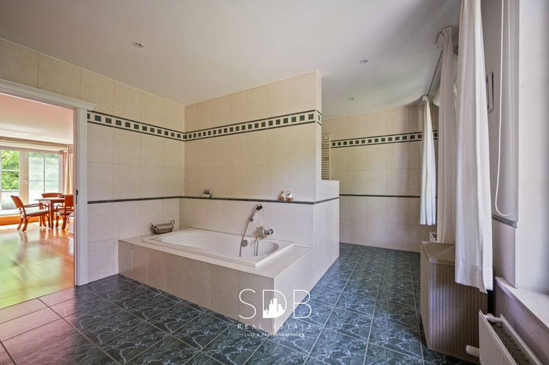 In Te Haasdonk, einem Ortsteil von Beveren im Herzen des Waaslandes, finden wir dieses wunderschöne Landhaus mit Pferdeanlagen auf 15.804 m². Mit hervorragender Anbindung an umliegende Städte wie Antwerpen und Gent bietet Haasdonk eine ideale Wohnlage. Der Eingangsbereich spiegelt die ländliche Eleganz und den Charakter des Hauses wider. Einerseits gelangt man in das Büro, andererseits in das Wohnzimmer. Das großzügige Wohnzimmer ist in einen gemütlichen Essbereich und zwei stilvolle Sitzecken unterteilt, von denen eine um einen zentral gelegenen Kamin angeordnet ist. Mehrere Fenster sorgen für viel natürliches Licht. Die moderne Küche ist mit allen Annehmlichkeiten ausgestattet. Diese Küche mit angrenzendem Abstellraum verbindet klares, zeitgemäßes Design mit praktischer Funktionalität und profitiert ebenfalls von viel Tageslicht. Im Erdgeschoss befindet sich ein kompakte Badezimmer, ausgestattet mit einem Waschtisch und Dusche. Im ersten Stock befinden sich vier großzügige Schlafzimmer. Das Hauptschlafzimmer verfügt über ein eigenes geräumiges Badezimmer sowie eine private Dachterrasse – ein einzigartiger Ort mit Panoramablick. Dieses große Bad ist ausgestattet mit Doppelwaschtisch, Badewanne, Dusche und WC. Das zweite Badezimmer verfügt ebenfalls über zwei Waschtische, eine Badewanne, eine Dusche und ein WC. Im zweiten Stock befindet sich der Dachboden, der als voll ausgestatteter Wohnraum vielfältig nutzbar ist. Dieses wunderschöne Landhaus verfügt außerdem über ein exklusives Hallenbad – der perfekte Ort zum Entspannen und das ganze Jahr über zu genießen. Die Fenster sorgen für eine helle, offene Atmosphäre und schaffen eine nahtlose Verbindung nach draußen. Die integrierte Garage bietet Platz für bis zu drei Fahrzeuge. Hier sind auch die Versorgungsanschlüsse für Waschmaschine und Trockner vorhanden. Außen wird man von einer parkähnlichen Atmosphäre umgeben. Ziersträucher, schattige Bäume und gemütliche Terrassen laden zum Entspannen und Genießen ein, ergänzt durch einen angenehmen Familiengarten. Hinter dem Grundstück befindet sich ein Stallgebäude mit sechs Boxen, einer Sattelkammer bzw. Futterraum sowie Stauraummöglichkeiten für Heu und Stroh. Angrenzend befindet sich eine Reitbahn mit den Maßen 36 x 70 m, ideal für tägliches Training, Freizeit und Sport. Die angrenzenden Weideflächen bieten den Pferden ihre tägliche Bewegungsfreiheit, wobei einige in Gras-Paddocks unterteilt sind. Alle sind mit Holzpferdzaun eingezäunt. Dieses beeindruckende Anwesen bietet alle Voraussetzungen für Pferdeliebhaber und Tierhalter. Dank der idealen Lage und des privaten Charakters genießen Sie hier täglich Ruhe, Komfort und Authentizität. Interessiert an dem Charme dieses charaktervollen Landhauses mit Pferdeanlagen? Oder an einem einzigartigen Wohnerlebnis mit Ausstrahlung und Eleganz, mitten im Grünen? Zögern Sie nicht, uns zu kontaktieren. www.sdb.realestate