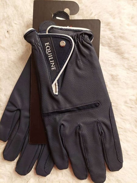 Schöne, elegante Reithandschuhe der Marke Equiline, Neu mit Etikett, Größe 9 mit Beluftungsschlitze und ultrastarken Klettverschluss, blue navy, blau Kunstleder Belüftungsschlitze Touchscreen kompatibel ultrastarker Klettverschluss hoher Tragekomfort keine Rücknahme oder Garantie, da Privatverkauf