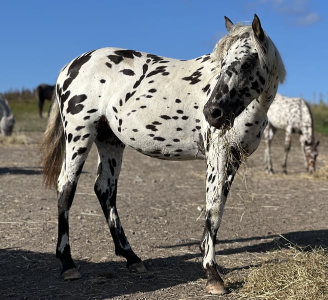 Verkaufe elegante Knabstrupper-Hoppe – Ein echtes Schmuckstück! Zum Verkauf steht eine wunderschöne Knabstrupper-Hoppe, geboren im Jahr 2024. Diese außergewöhnliche Stute besticht durch ihr einzigartiges Tigerplettet-Fell und ihre barocke Erscheinung. Mit einem Stockmaß von 155 cm vereint sie Kraft, Eleganz und Charakter. Sie ist bestens geeignet für Reiter, die Wert auf eine charakterstarke und beeindruckende Partnerin legen. Das barocke Erscheinungsbild macht sie zu einem echten Blickfang und ideal für Show, Freizeit oder Zucht. Bei Interesse stehe ich gerne für weitere Informationen und eine Besichtigung zur Verfügung. Kontaktieren Sie mich – freuen Sie sich auf dieses besondere Pferd!