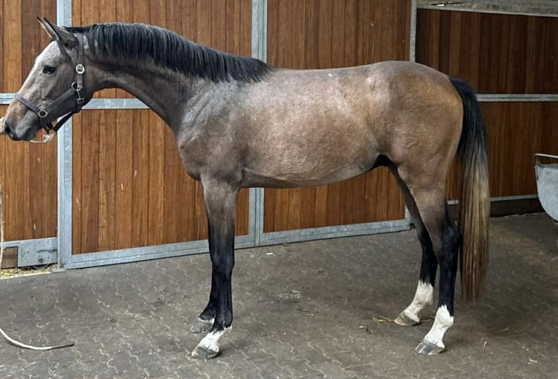 Zum Verkauf: 3-jähriger Hengst – Außergewöhnliche Qualität und Abstammung Zum Verkauf steht ein 3-jähriger Hengst, 168 cm groß, mit hervorragender Konformation und Ausstrahlung. Dieser junge Wallach überzeugt durch sein Typ und seine Qualität und ist somit eine vielversprechende Perspektive für den Sport oder die Zucht. • Alter: 3 Jahre • Größe: 168 cm • Disziplin: Springen (Perspektive) • Ausbildung: Noch nicht unter dem Sattel geritten Dieser Hengst vereint Eleganz, Kraft und Potenzial. Er ist ideal für jemanden, der einen zukünftigen Sportpartner mit hervorragender Abstammung entwickeln möchte.