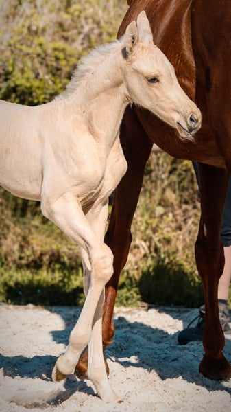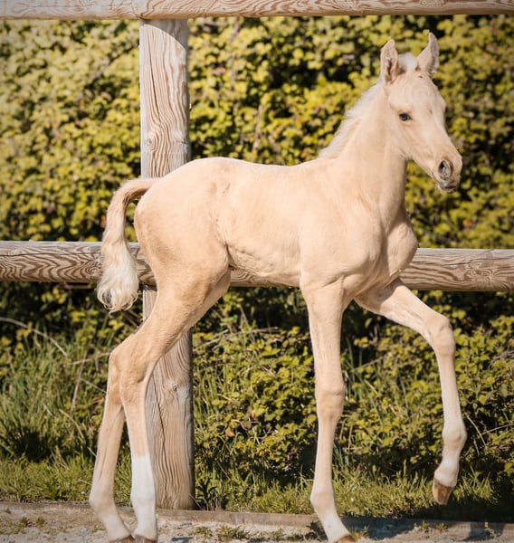 🌟 World is Mine Of Vencedor 🌟 Palomino KWPN stallion By Qaside MD out of Impossible (Imposantos x Bordeaux) --- The perfect blend of charisma, genetics, and movement. World is Mine Of Vencedor is an exceptional foal, embodying everything the modern dressage market seeks today: a striking natural presence, a rare coat color, and a build designed for performance. From the first glance, he commands attention with his ultra-chic appearance, elegance, and attitude. In motion, he immediately confirms: three high-quality gaits with plenty of swing, elasticity, and excellent natural balance. His canter is uphill and cadenced, his expressive trot with bounce, and his spacious, light-footed walk. A harmonious, modern model with a true back mechanics. --- 🔬 Pedigree: An intelligent and contemporary cross, combining strength, locomotion, and aptitude for collection, with proven lines for producing Grand Prix horses. --- 🎯 Potential: A serious prospect for high-level sport, but also a strategic investment thanks to his palomino coat and very commercial conformation. --- 💎 For whom? Ambitious rider, breeding farm looking to enhance their stock, or investor seeking a horse with high added value, capable of standing out both in the arena and on the market. --- “This is not just a color. It’s primarily a quality horse… with the color to match.”