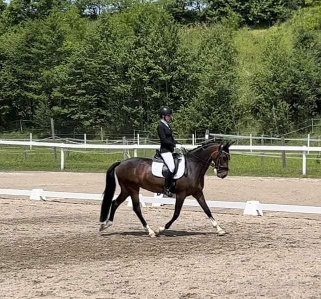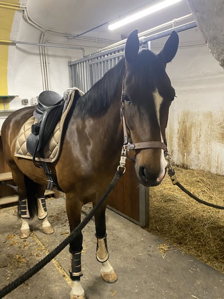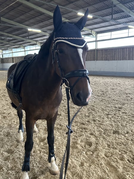 - Quiet and confident loading and shoeing behavior - Iron shoes on front, barefoot behind - Vaccinated and dewormed - Equine passport available Luna is a dressage-oriented leisure horse with consistently high motivation and a strong work ethic. She is trained up to early L-level and has already achieved success in class A competitions. In the terrain, she proves to be an absolutely reliable and trustworthy partner, capable of leading the group without issues. If you are interested, we look forward to your call or message to discuss further details and arrange a viewing appointment.