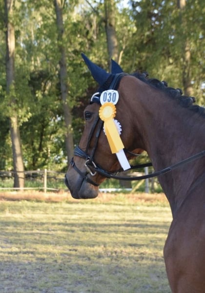Emilia Clarke is een grote, prachtige KWPN-merrie met een uitstekende afstamming. Haar vader Everdale (internationaal succesvol tot Grand Prix onder Jessica von Bredow-Werndl) en haar grootvader Florencio I (tweevoudig wereldkampioen jonge dressuurpaarden) staan voor kwaliteit. Ze bevindt zich momenteel op het niveau van de L-dressuur en hervat na een trainingspauze haar wintertraining. Wie nu consequent doorwerkt en een team met haar vormt, krijgt een eerlijk, talentvol dressuurpaard met potentieel voor meer. Naast dressuurtraining is Emilia ook af en toe gesprongen, tot ongeveer 1 meter. Ze kent springhulpen, werkt daar braaf mee en laat zich prettig berijden. In het springen is ze geen vanzelfsprekendheid, maar profiteert ze van een rustige, duidelijke ruiter. Bij jongere ruiters, zoals mijn 15-jarige nichtje, toont ze zich altijd braaf, gemotiveerd en prestatiegericht. Ze is een vriendelijke, knuffelige en gemotiveerde merrie die graag meewerkt en in het dagelijks contact plezier geeft. In nieuwe situaties zoekt ze een ruiter die haar zelfvertrouwen geeft. Emilia heeft al wedstrijdervaring opgedaan en is geplaatst in E-springen (LPO en WBO). Ook is ze enkele keren voorgesteld in A-springen (WBO ook eens geplaatst), maar daar is ze niet verder in ontwikkeld. In de dressuur is ze vooral gepresenteerd in dressuurwedstrijden, waar ze zich steeds braaf toont – ook aan het begin van de proef loopt ze betrouwbaar en ontspannen. Een geweldig paard voor ambitieuze recreatie-ruiters, herintreders, wedstrijdruiters of een ouders-kind duo dat samen plezier heeft in de dressuur en misschien af en toe een sprong wil maken. In de zomer staat Emilia 24 uur per dag op de wei, in de herfst en lente in de paddock, en in de winter in een box met dagelijks buitenrit of paddockgang. Ze kent zowel weide- als stallinghoudingen, maar geeft de voorkeur aan een eigen plek in de paddock waar ze tot rust kan komen. Het is geen noodgeval, ze wordt alleen geplaatst bij zorgvuldige, liefdevolle mensen waar ze op lange termijn mag blijven en minstens zo geliefd wordt als bij ons. Bij ons komt ze simpelweg te kort, waardoor haar talent verloren gaat. Proefrijden is mogelijk na afspraak in 41515 Grevenbroich (bijdrage van €25, wordt verrekend bij aankoop). Bij vragen sta ik u graag te woord.
