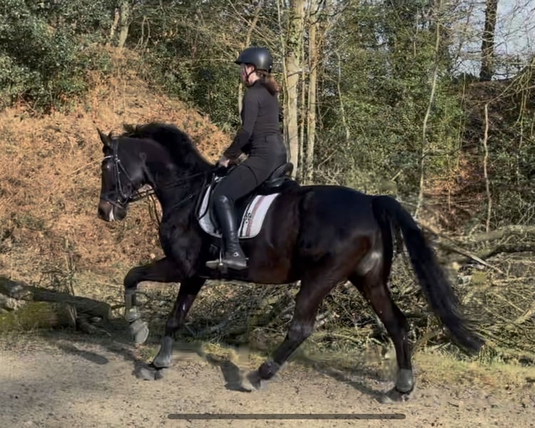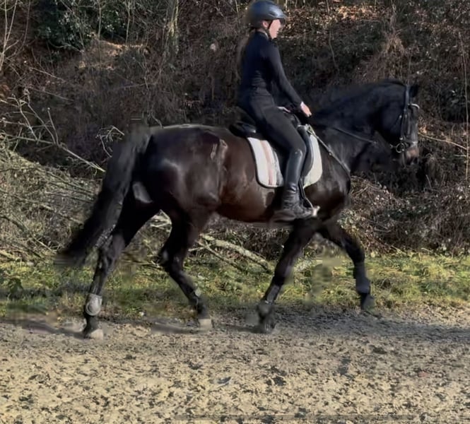 „Grace“ ist eine vielseitige KWPN-Stute mit Go und Ausdruck. Sie ist seit etwa einem halben Jahr bei mir zur Korrektur und hat sich in dieser Zeit sehr positiv entwickelt. Sie kennt Doppellonge, Handarbeit, dressurmäßige Arbeit und wird gesprungen. Im Umgang und unter dem Reiter zeigt sie sich nun brav, kann aber bei Über- oder Unterforderung sowie unter unsicherer Führung Eigeninitiative ergreifen. Bei der Vorbesitzerin kam es dadurch zu Ungehorsam, weshalb der Verkauf erfolgt. Unter erfahrener, konsequenter Reiterhand tritt dieses Verhalten nicht auf. Mit entsprechender Korrektur, Auslastung und Begleitung kann Grace durchaus von einer weniger erfahrenen Reiterin mitgeritten werden, vorausgesetzt, sie steht weiterhin unter professioneller Anleitung. Grace sucht ein Zuhause, in dem sie sowohl geistig als auch körperlich gefördert wird!!