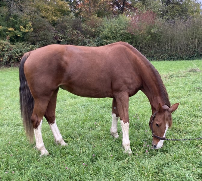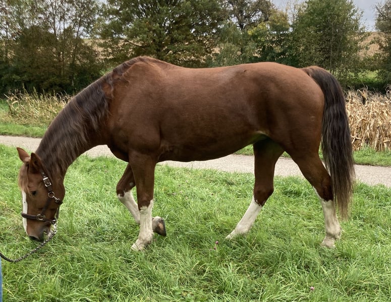Schicke Stute, brav, keinerlei Unarten, schmiede und verladefromm sucht neues Zuhause weil sie nicht 100% zu uns passt. Bei uns wird sie freizeitmäßig im Gelände geritten. Bei ihrem vorherigen Besitzer einspännig gefahren.