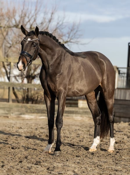 Like a fairy tale come to life This 3.5-year-old, backed KWPN Warmblood mare captivates from the very first moment. Delicately expressive, curious in nature, and naturally elegant, she possesses everything one could wish for in a young mare with a bright future. Gently backed, she proves to be well-behaved, eager to learn, and sensitive. She approaches new tasks with calmness and confidence and strives to please her handler. Her movements are relaxed, harmonious, and carried with ease— a young mare that can develop without pressure, with patience and understanding. Whether as a future sport partner or as a heart horse for someone wishing to share the journey. Pedigree This young KWPN mare comes from performance-oriented, proven Dutch sport lines. Her pedigree combines modern dressage sires with proven rideability, quality movement, and a balanced temperament. A pedigree that promises both sporting potential and a reliable riding horse with a fine character.