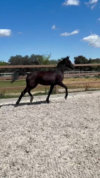 Descripción: En venta espectacular potra KWPN nacida en 2023, con un pedigree excepcional diseñado para el más alto nivel de Doma Clásica. Tiana combina elegancia, tres aires de gran calidad y un carácter inmejorable. Línea Genética: Su árbol genealógico reúne a los sementales más influyentes de la cría moderna: Padre: Imagine (hijo del gran Chippendale). Madre: Garushi, por el legendario Vivaldi, semental que ha revolucionado la doma europea. En su línea materna y paterna encontramos nombres como Jazz, Sandro Hit y Krack C, garantizando una base sólida de movimientos elásticos, fuerza en el tercio posterior y una presencia imponente en pista. Características: Alzada actual: 165 cm (con gran proyección de crecimiento). Movimientos: Destaca por un galope muy equilibrado y un trote con mucha suspensión y libertad de espaldas. Carácter: Es una potra noble, acostumbrada al contacto humano y con gran facilidad para el aprendizaje. Potencial: Debido a su morfología y genética, es una apuesta segura tanto para jinetes profesionales que busquen un caballo de futuro para Gran Premio, como para ganaderos que deseen incorporar líneas de sangre contrastadas a su yeguada.