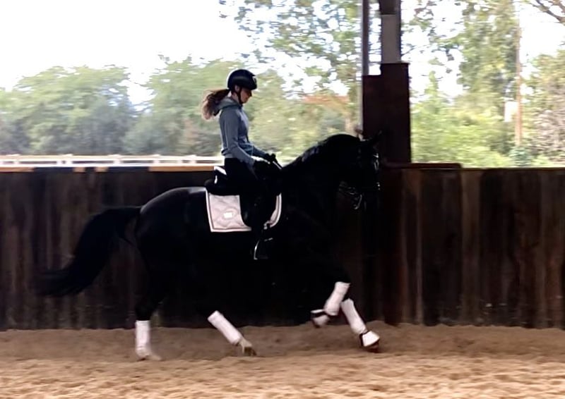 Diese 7j Stute ist sehr angenehm zu reiten. Serienwechsel und Pirouetten sind schon in Training. Macht einen sehr eleganten Eindruck. Ist ein Damenpferd/Mädchenpferd. Keine Unarten. Gesund.
