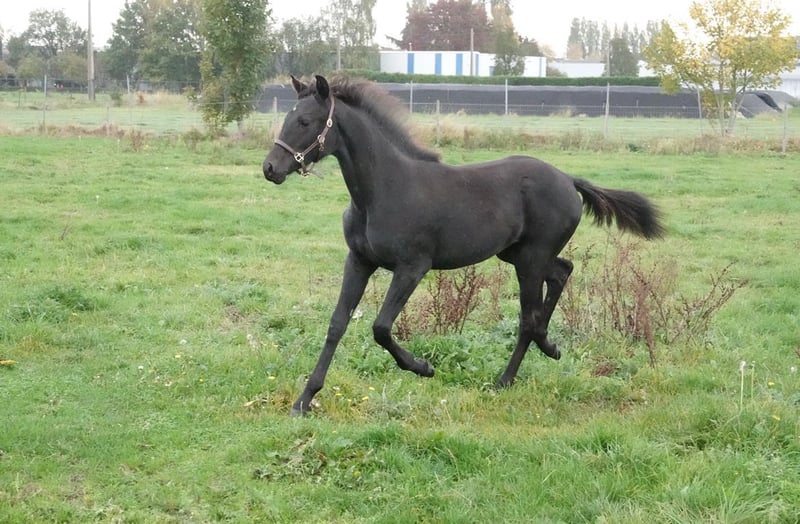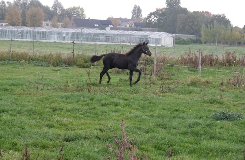 De over veel uitstraling beschikkende Vie d’Or by Dm.Dressage is een dochter van pjethro , dewelke duidelijk zijn bewegingstechniek en goed achterbeengebruik vererft heeft. Uit zijn eerste jaargang lijkt hij ook zijn goede instelling door te geven. Zelf scoort pjethro zeer goed bij de jonge paarden met Charlotte Fry. Hij werd 1ste in Klasse M met 89,8 punten. Moeder Etanga II is een dochter van de elite merrie Atanga, een halfzus van de Wynton nakomeling en op Grand Prix niveau presterende Etanga. Als vader van Etanga II staat Fürst Romancier te boek, waardoor we een interessante combinatie krijgen van Duitse en Nederlandse sterkhouders. Fürst Romancier is uitgegroeid tot een leverancier van top sportpaarden. Zijn dochter Fasine zegevierde als kampioene van de zesjarige dressuurpaarden en als winnares van de Oldenburger Elite Merriekeuring in 2012. Ze was ook de veilingtopper voor 1,3 miljoen euro en is de volle zus van For Romance I en II. For Romance I was de keurings- en premiewinnaar in Oldenburg en werd verkocht voor 750.000 euro en For Romance II was in 2015 premiehengst en blijft een veelgevraagde dekhengst. Verder volgt een eindeloze lijst van sterk presterende nakomelingen in het internationale circuit. Dit plaatje staat ongetwijfeld een mooie sportieve carrière te wachten. Zelf hebben we ook een nakomeling (eliteveulen geweest. 3de regionaal, 8ste nationaal) staan van Etanga II omdat ze top veulens geeft. Ook is Etanga II terug drachtig van Pjethro aangezien we dit zo een tof veulen vonden. Dm.Dressage
