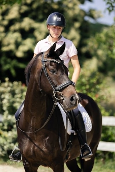 Wunderschöner 10-jähriger KWPN-Hengst mit bezaubernder Persönlichkeit. Kazz überzeugt durch seine Konstanz, sein natürliches Gleichgewicht und seine hochwertige Bewegungsqualität. Sensibles und großzügiges Pferd, zeigt er echtes Engagement im Training und eine starke Motivation, es gut zu machen. Mit einer Größe von ca. 1,67 m vereint Kazz eine ausgewogene Morphologie mit viel Bewegungsumfang, was ihn besonders angenehm im Reiten macht. Er verfügt über einen sehr guten Schritt, weit und elastisch, sowie einen aufstrebenden, aktiven Galopp, der sich ideal für die Entwicklung in den technischen Prüfungen eignet. Sein Trab zeichnet sich durch eine nahezu metronomische Regelmäßigkeit, Elastizität und eine natürliche Impulsivität aus. Kazz wurde bereits in der Amateurklasse 2B vorgestellt, wo er von den Richtern sehr gute Kommentare und Bewertungen bis zu 8 erhielt, was seine Rittigkeit und sein Potenzial unterstreicht. Derzeit arbeitet er auf dem Niveau Saint-Georges, mit kontrollierten Tritten im Trab und Galopp, einem stabilen Gegen-Galopp, festen, sicheren Übergängen sowie bereits gut entwickelten Wechseln in der Luft. Herkunft: Vater: Aqiedo (KWPN), bekannt für die Zucht leistungsstarker, gut gebauter und in der Arbeit zuverlässiger Pferde mit ausgezeichneter Bewegungsqualität. Mutter: Oziena Oes, Tochter des berühmten Jazz (KWPN), einer Ikone der holländischen Zucht, bekannt für Energie, Eleganz und hohe Dressurqualität. Kazz ist ein ausgeglichener, menschenbezogener und respektvoller Hengst. Er kann seine Emotionen selbstständig und mit bemerkenswerter Reife steuern, bleibt aber sensibel und verlangt nach einem ruhigen, ausgeglichenen Reiter, der eine vertrauensvolle Beziehung aufbauen kann. Er eignet sich ideal für einen engagierten Amateur oder einen professionellen Reiter. Pflege und Lebensweise: Seit zwei Jahren in Ausbildung bei einer professionellen Reiterin, profitiert Kazz von einer umfassenden, hochwertigen Betreuung: - Schmied regelmäßig von einem der besten Spezialisten - Regelmäßige Behandlungen durch eine Tierheilpraktikerin, Ernährungsberaterin, Pferdemasseurin, Osteopathin, Bit-Fit-Expertin und Sattel-Fit-Expertin - Gesunder, nie verletzter Pferdekörper mit vorbildlicher veterinärmedizinischer Historie (nur Impfungen) - Leben in der Herde auf der Weide mit Heu rund um die Uhr, für eine gute physische und mentale Balance Vielseitig und motiviert arbeitet Kazz im Dressurtraining, an der Longe, mit langen Zügeln, in Freiarbeit und im Gelände. Er besitzt außerdem eine ausgezeichnete Springanlage, die bisher wenig genutzt wurde, was für einen Reiter interessant sein könnte, der die Disziplinen variieren möchte. Mit seinen soliden Abstammung, seinem hervorragenden Dressurniveau, seiner Vielseitigkeit und seinem liebevollen Temperament ist Kazz ein hochwertiges Pferd, das sich für die Entwicklung in Saint-Georges-Prüfungen und darüber hinaus eignet – und gleichzeitig ein zuverlässiger Partner im Alltag ist. Eine echte Gelegenheit für einen Reiter, der in eine schöne Beziehung investieren möchte, mit einem gut erzogenen, talentierten und sorgfältig betreuten Pferd.