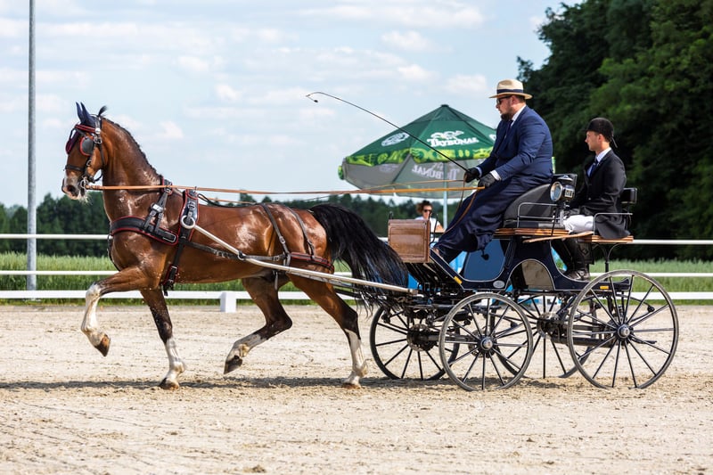 Junger, wallachhafter Wallach in einem sehr guten sportlichen Typ mit guter Beweglichkeit in 3 Gangarten. Er arbeitet in einem Einzel- und Dampfgeschirr. Er hat erfolgreich an nationalen Wettbewerben im Doppel und Einzel teilgenommen, sowohl bei offenen als auch bei Hallenwettbewerben. Agil und schnell im Marathon, ambitioniert. Ein tolles Pferd für Singles. Problemlos zu bedienen.