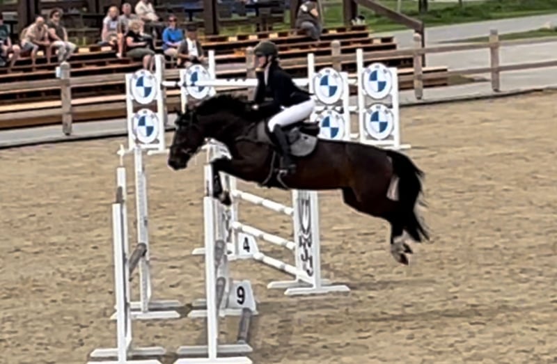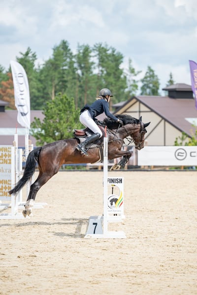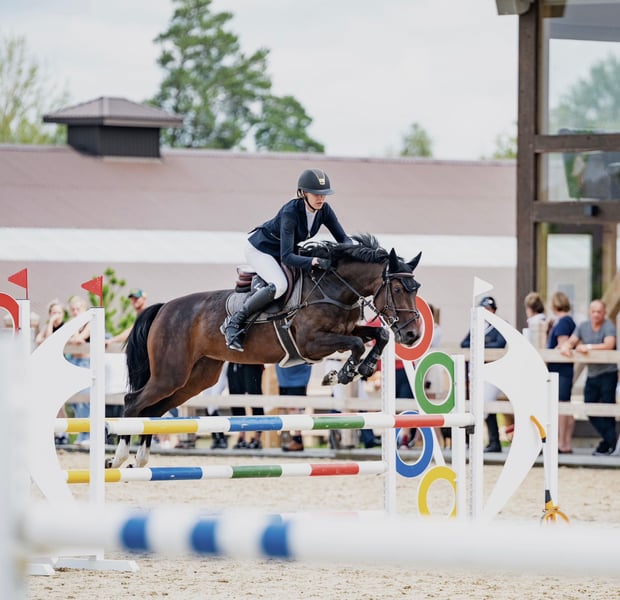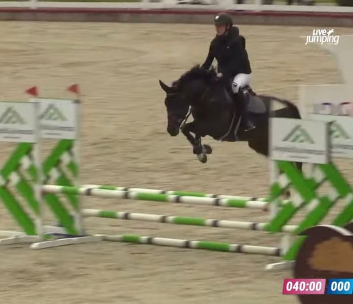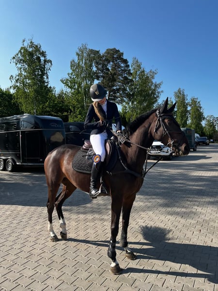 TOP 4yo KWPN mare by Mr. Emerald Fast winning type mare with big scope. In all her competitions goes only clear and fast. 4 yo but very good for child - jumps from every distance, very brave, not tall. Jumps everything from every distance, will be very good horse not only for jumping but also for eventing, because she is learning very fast. Very easy at flat work, nice leg changes. Broken and ridden in one hands. Clear x-rays, no health problems. Height around 160 cm